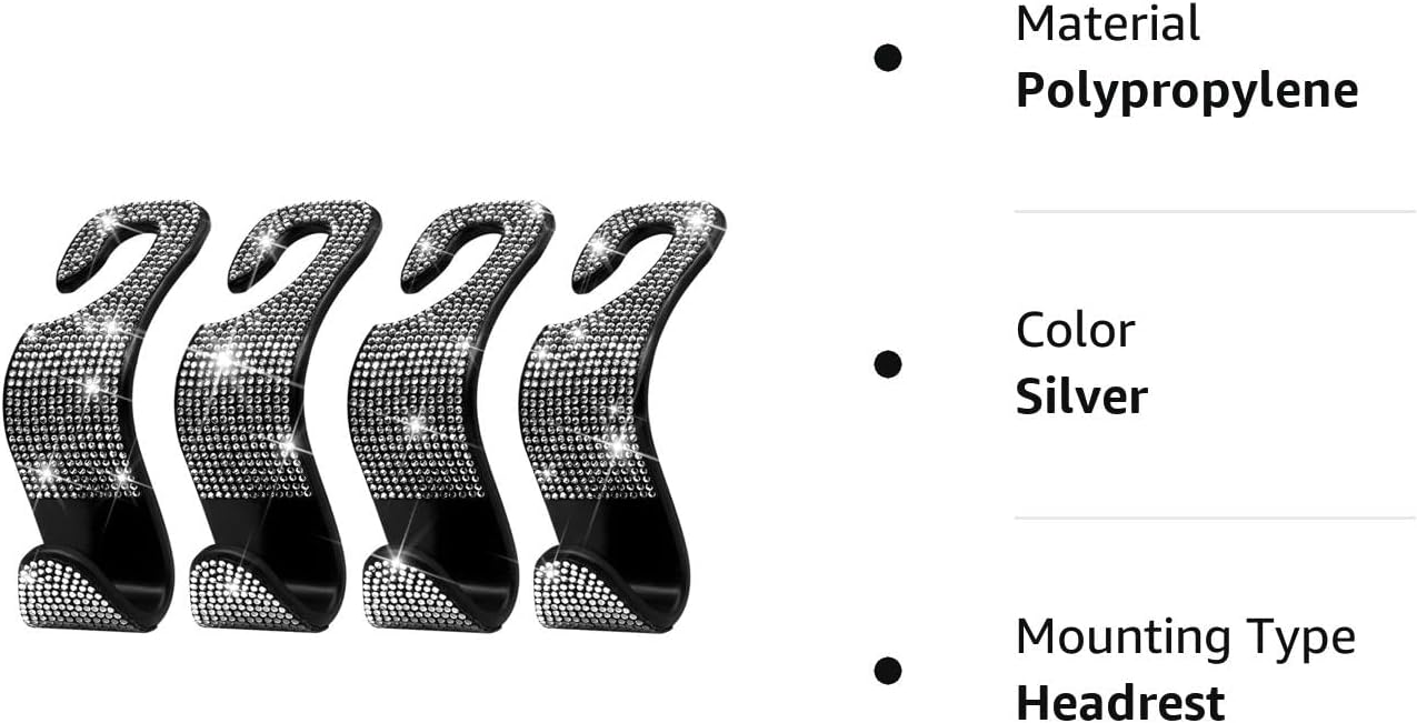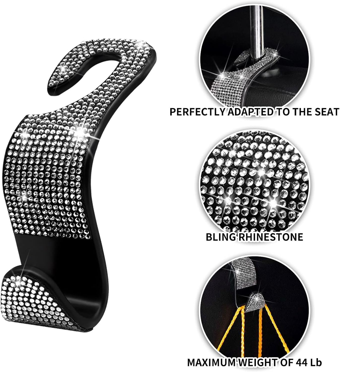 MOST COST-EFFECTIVE: 4 packs bling purse hook for car, 100% customer satisfaction service, value for your money, any questions, do contact us for help! We are always here to help you. We also believe they will be the perfect car accessories for women.