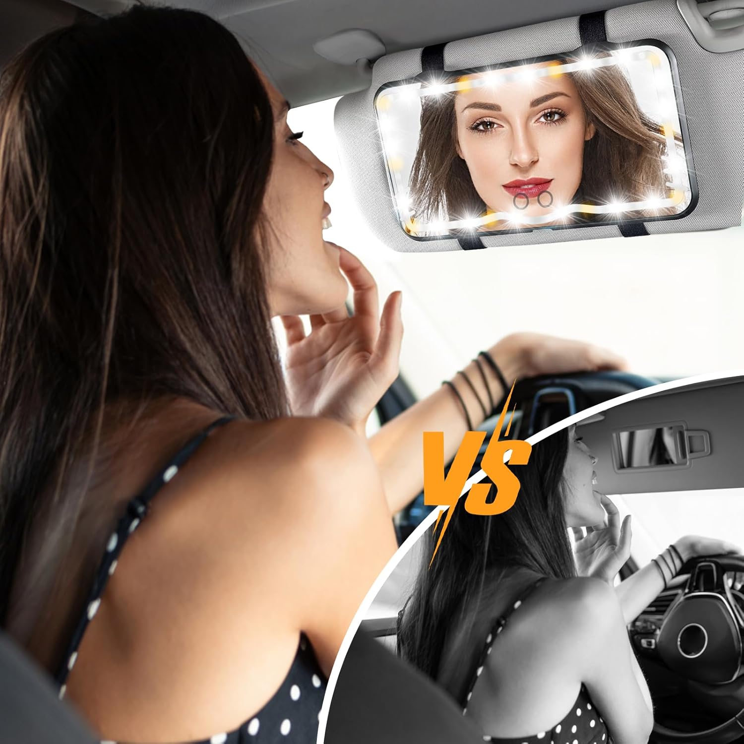 [3 Light Tones] ]–Our vanity visor mirror features two touch sensors. A quick press on the switche changes the light to one of three colors: Cold, warm, or natural light. For brightness adjustments, simply long-press the sensors to cater to varying needs during both day and night.