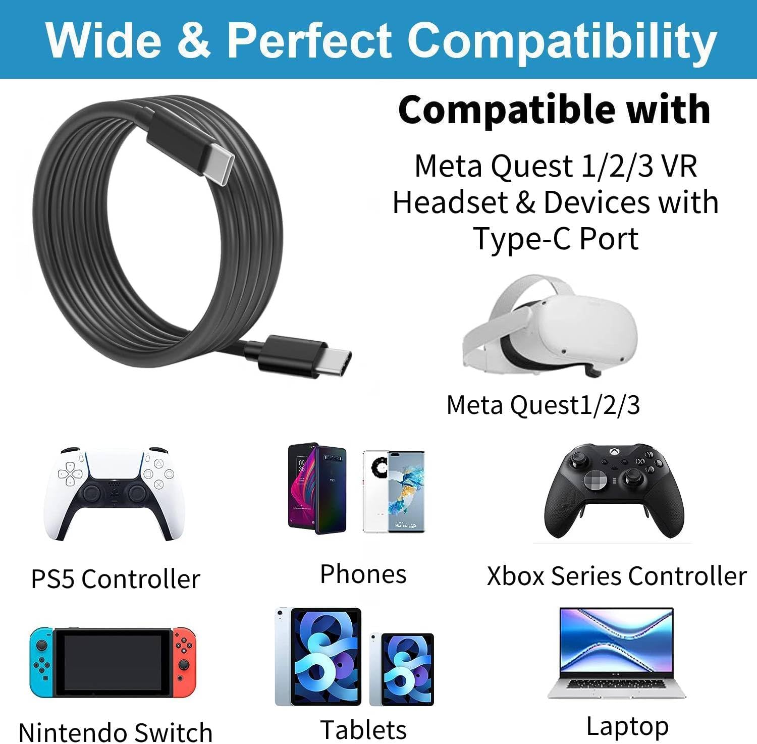 Charger for Oculus/Meta Quest 3/2/1, 6.6Ft VR Headset Fast Charging Cable Cord
