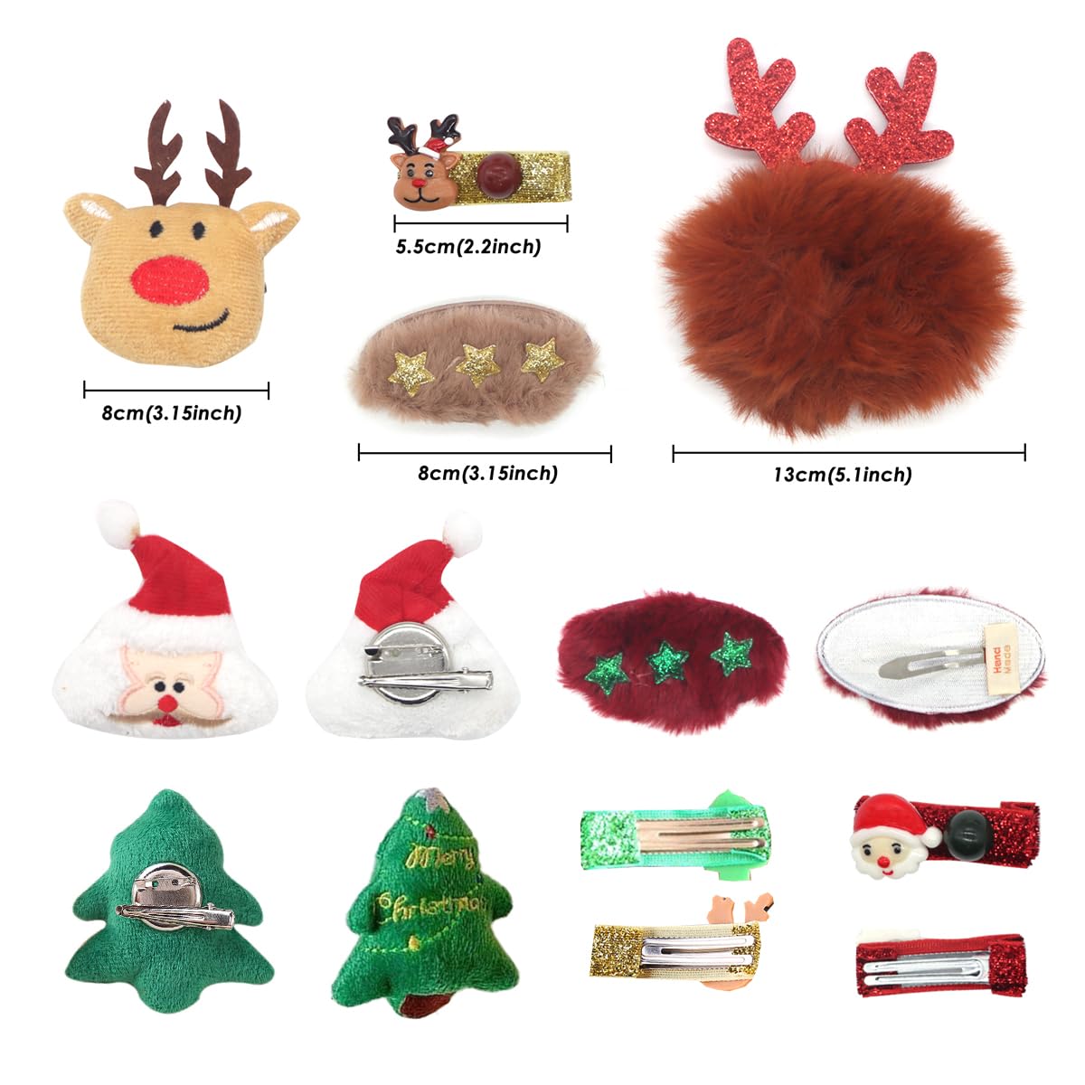 🎅【Christmas Hair Accessories】You will receive 3 Christmas girl hair accessory set consisting of rubber bands,brooches and hair clips,including classic Christmas elements such as elk,Santa Claus and Christmas tree.Your girl must be very happy.
