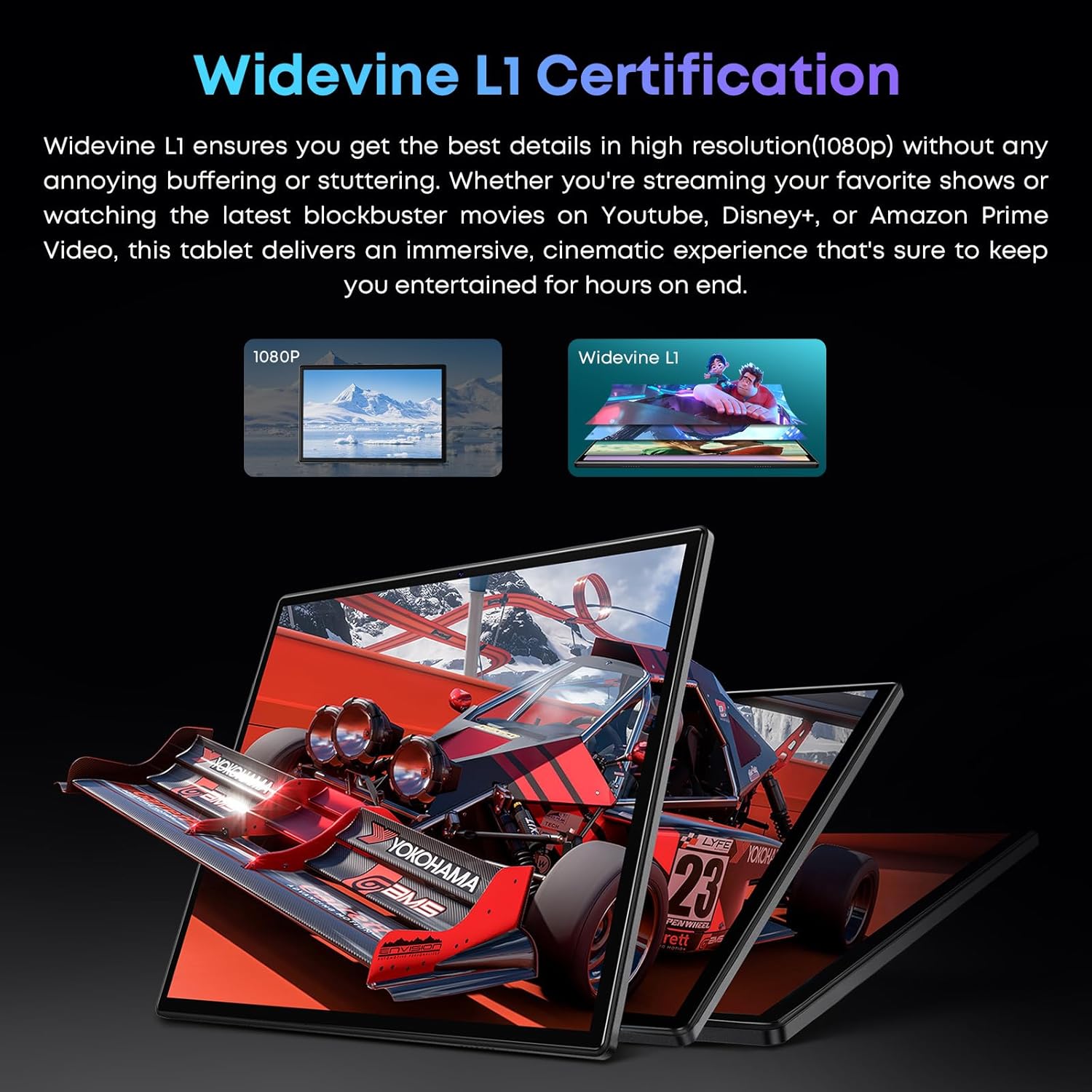 【8GB+128GB Storage & GPS】This 2 in 1 tablet is equipped with 8(4+4 Expand) RAM & 128GB ROM, supports TF card up to 512GB. And certified by Google Widevine L1, you can limitlessly enjoy or download your favorite series and shows on consume multimedia platform such as Disney+ and Prime Video. Built in GPS to provide precise positioning services anywhere.
