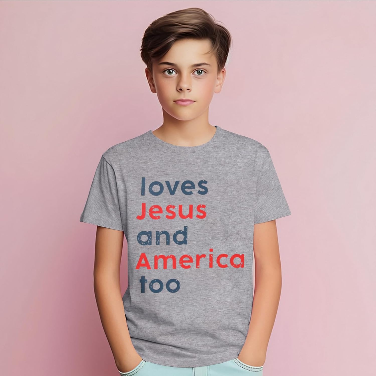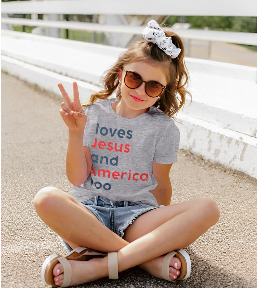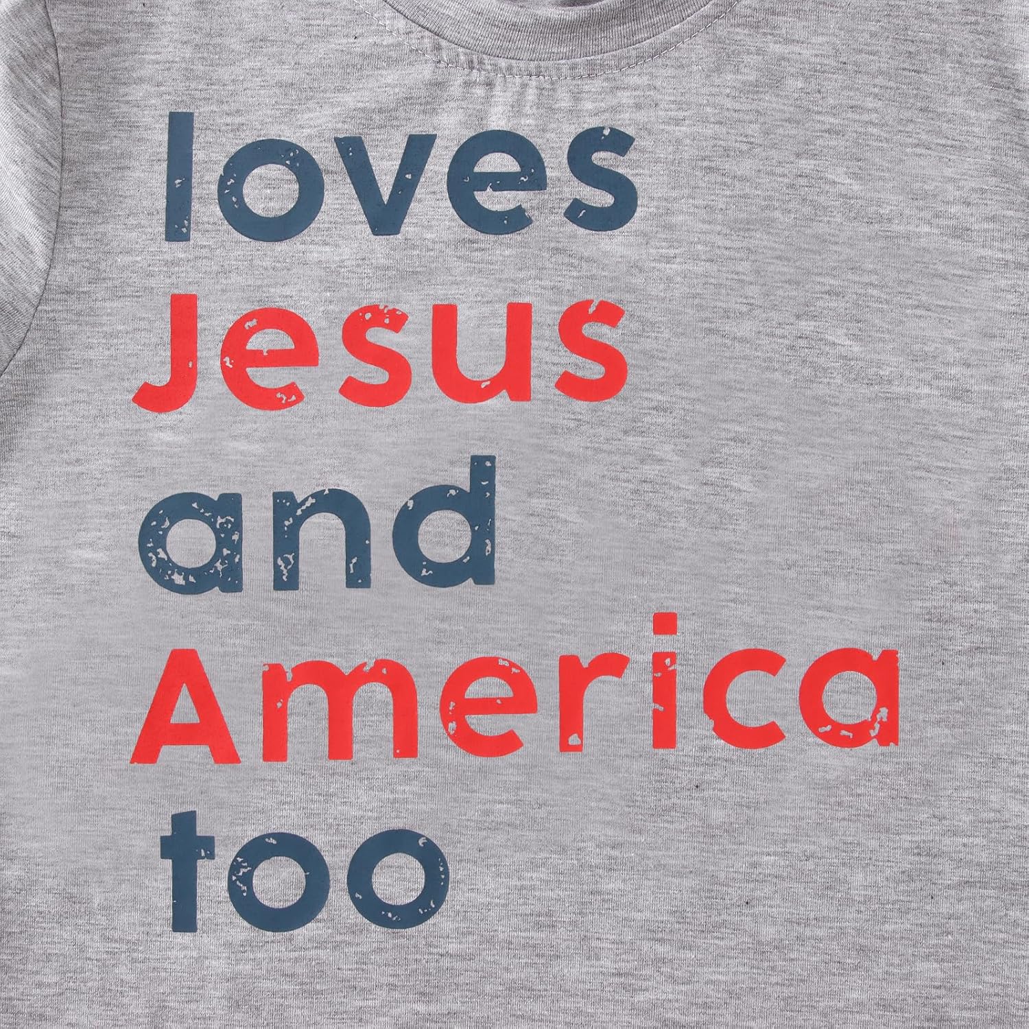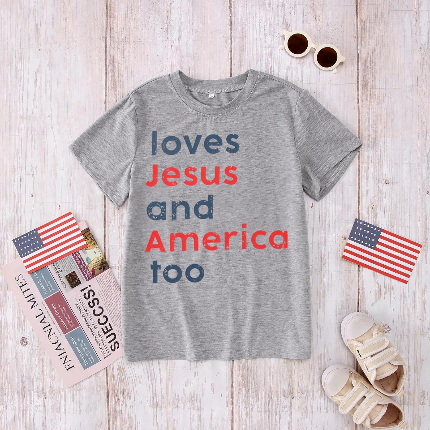 CM C&M WODRO Loves Jesus and America Too Shirt Kid Boy Girl 4th of July Patriotic T-Shirt Independence Day Tee Tops