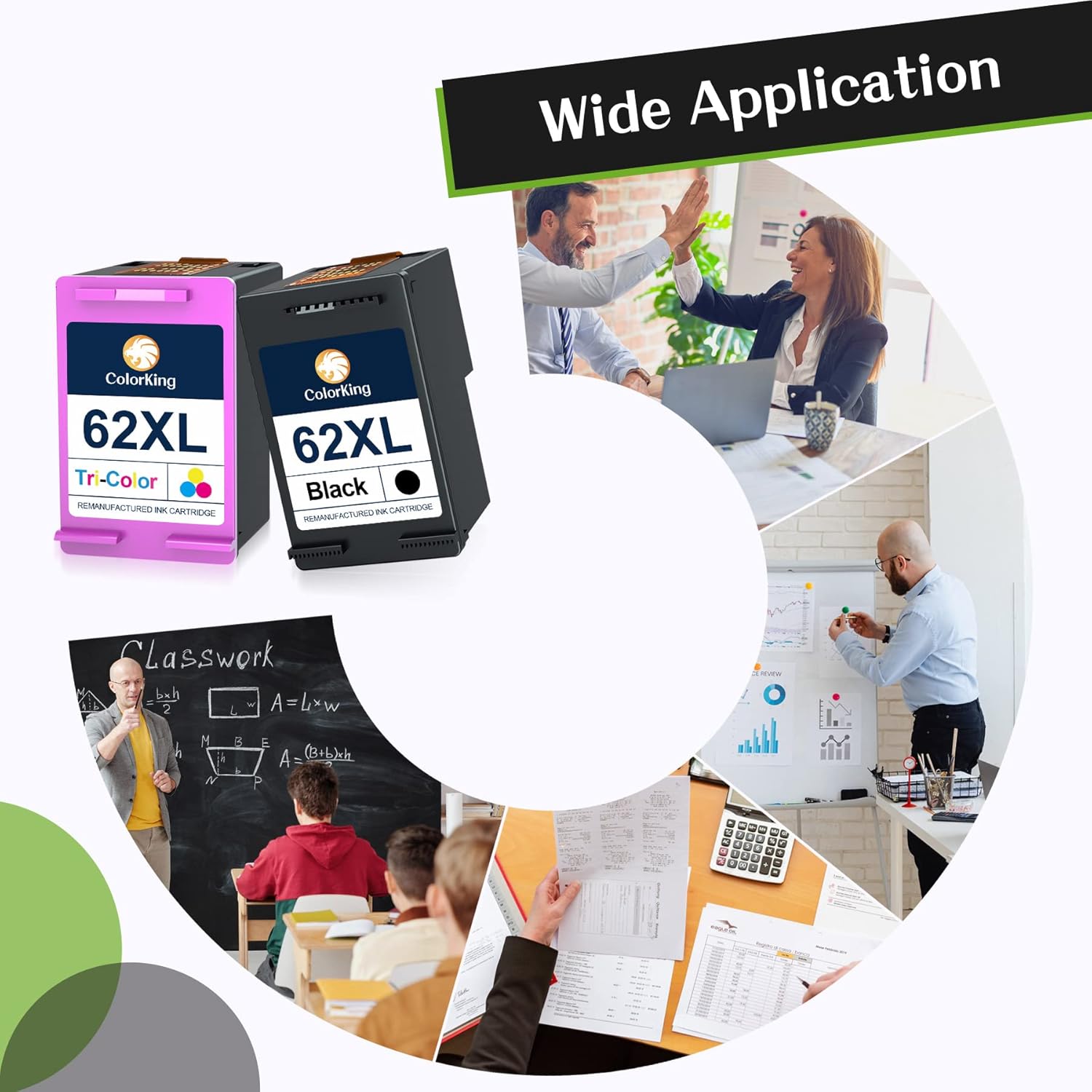 High Page Yield of Printer Ink 62: 715 Pages per remanufactured hp 62xl black ink cartridge, 475 pages per remanufactured hp 62xl color ink cartridge (A4 Letter, 5% coverage)