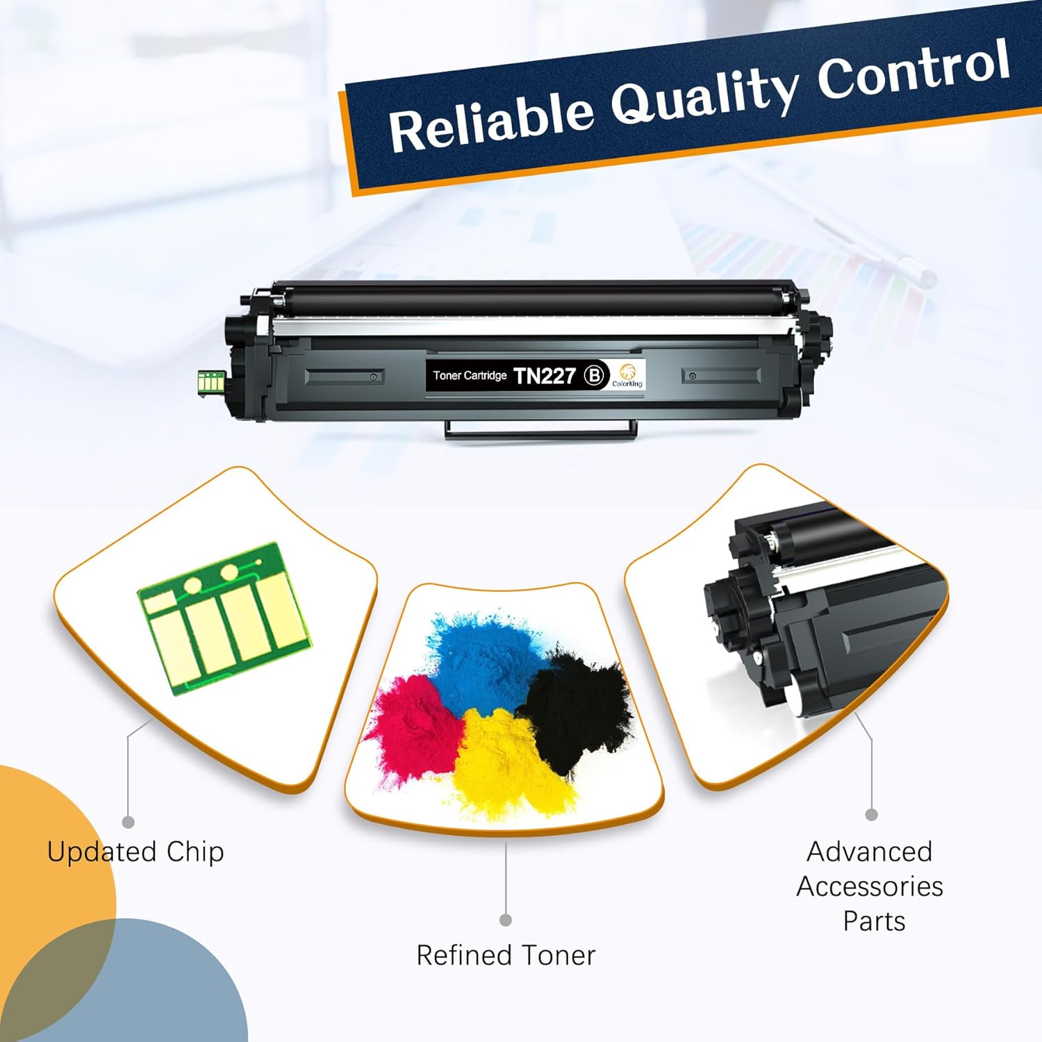 High Performance: ColorKing Compatible TN-227BK/C/M/Y, TN-223BK/C/M/Y High Yield Toner Cartridge Delivers Sharp Texts, Crisp Images and Stable Compatibility, No Fading, No Leakage, No Streak