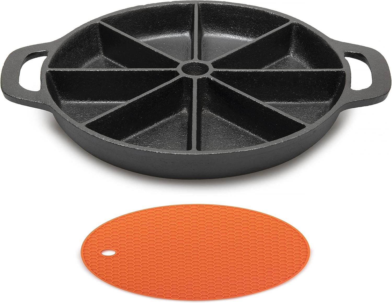 Cornbread Skillet – Bakes 8 Wedges of Crispy Cornbread and Scones – Pre-Seasoned Cast Iron Pan – Double Handles for Ease of Handling – Complete with Round Trivet Mat