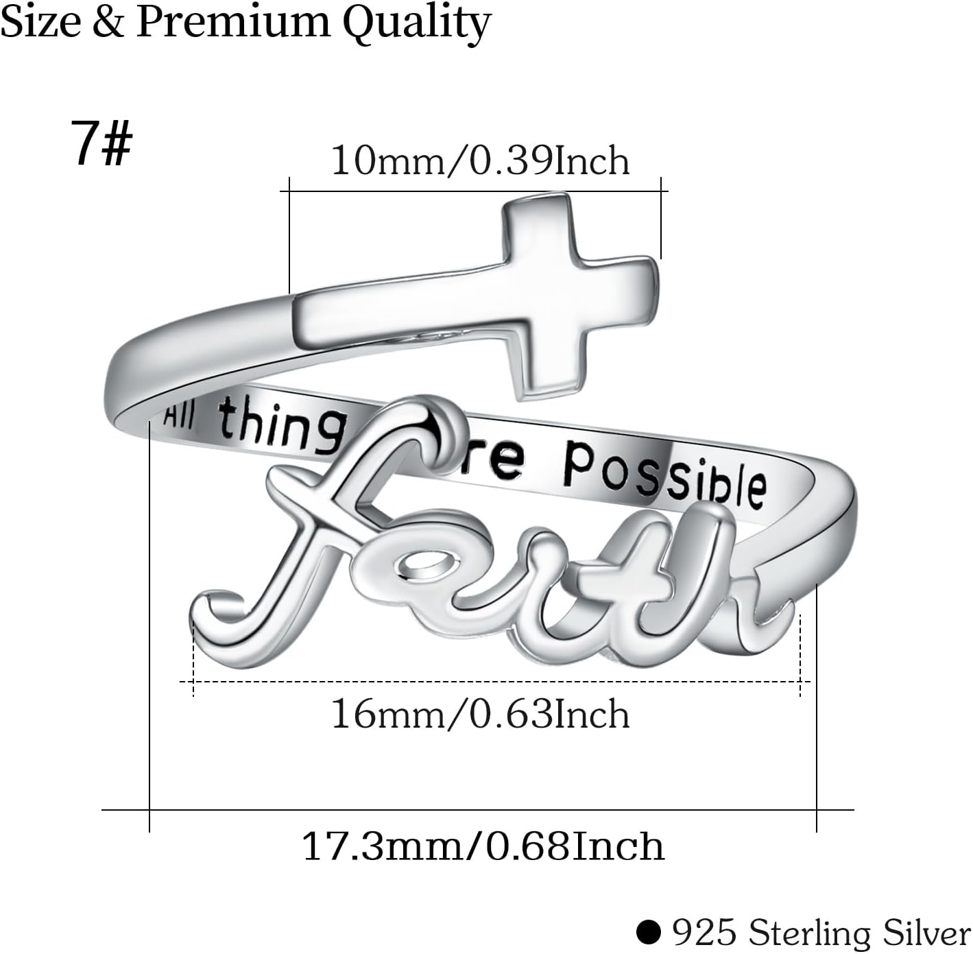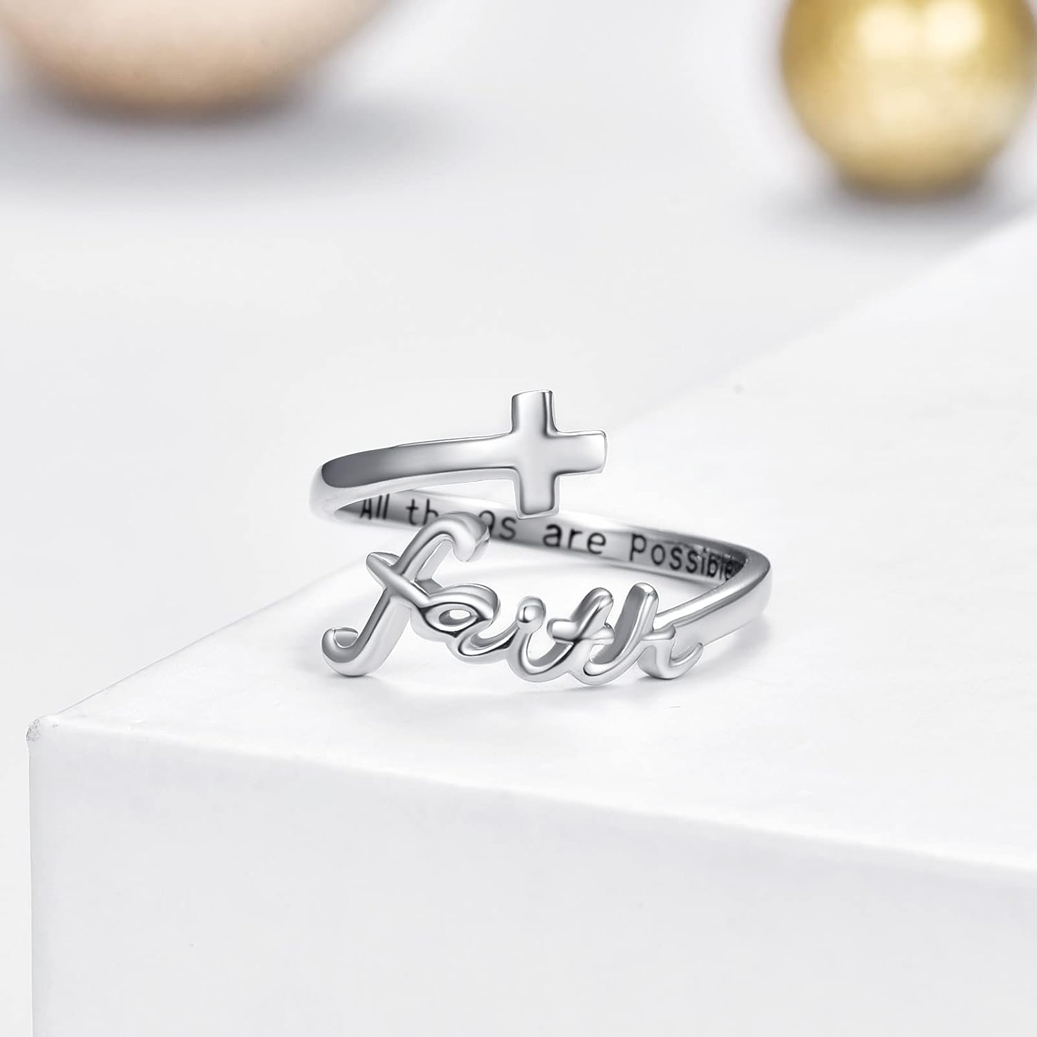 Cross Ring, Faith Ring Sterling Silver Adjustable Cross Wrap Ring Christian Fashion Band Ring for Women Girls Daughter Girlfriend Gift
