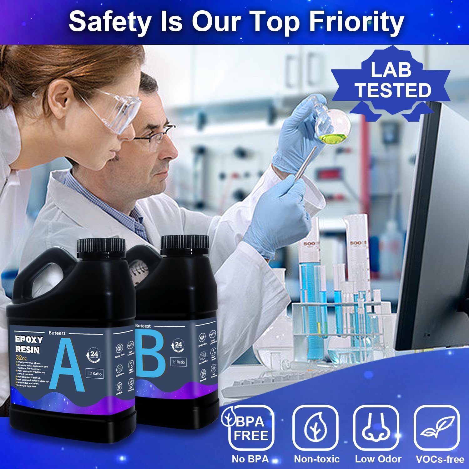💎【Meet Highest Standards, Safe to Use】Buteest premium epoxy resin meets RoHS, MSDS, FDA, U.S. ASTM D-4236 certification standards and passes sea transportation appraisal report. Our clear resin epoxy for crafts is non-toxic, no odor, no VOCs, no-BPA and non-flammable, safe for food when fully cured. The bottle cap of the gallon jug is designed with a nut and it has an inner plug for sealing, which is more convenient for transportation and less prone to spillage.