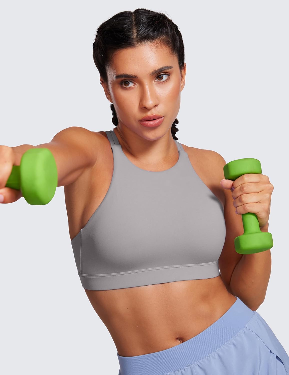 CRZ YOGA Womens Butterluxe High Neck Longline Sports Bras – Criss Cross Wireless Yoga Bra Padded Workout Crop Top