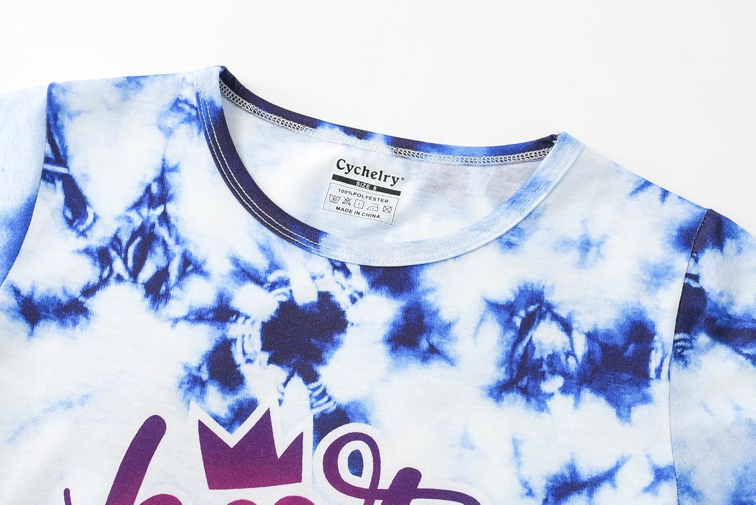 CYCHELRY Teen Girls Nightgowns-Trendy Tie Dye Short Sleeve Sleepwear Cute Polyster Nightdress Tween Pajamas Size 8-16