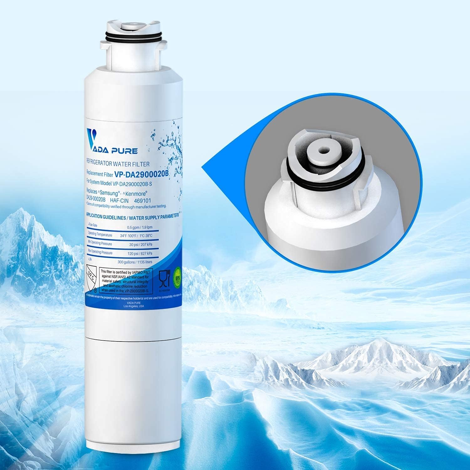 【 HEALTHY CHOICE 】Vada Pure refrigerator water filter is designed with activated carbon block filtration that removes up to 97% of chlorine, rust, and metals in your water to make it clean, this replacement water filter DA2900020B is certified by the NSF to be Lead-Free, BPA-Free and Food Grade materials