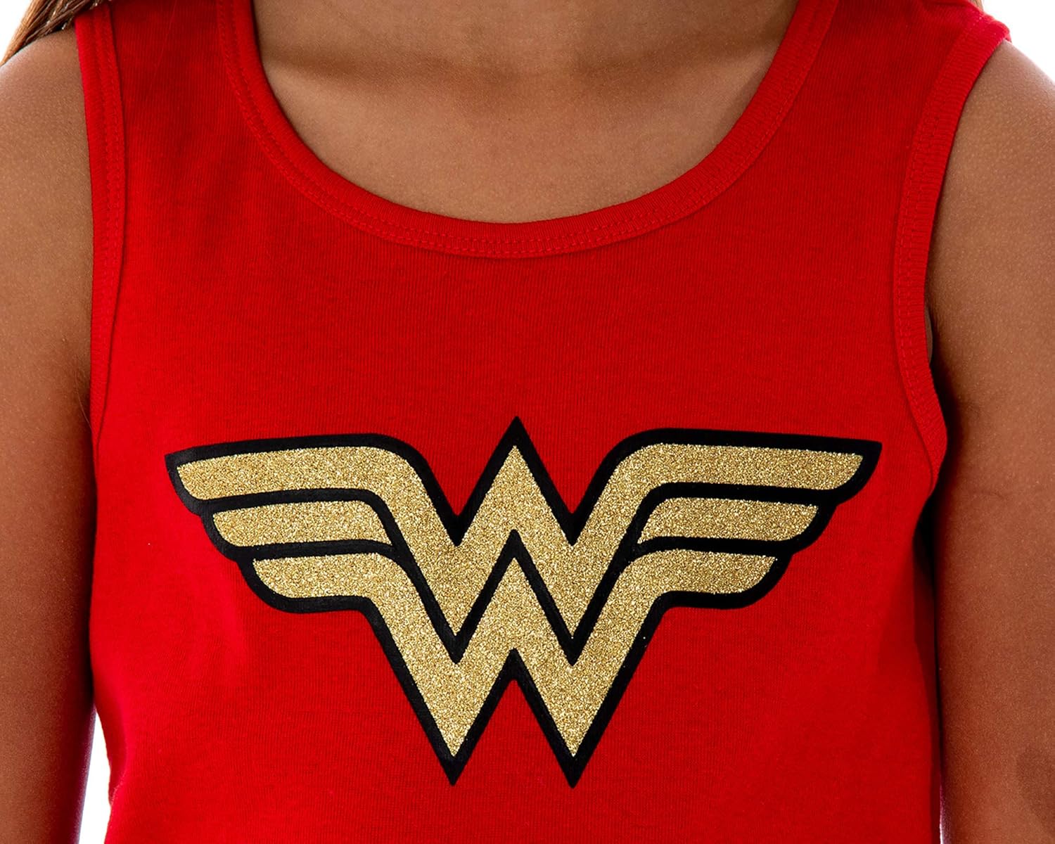 DC Comics Girls Wonder Woman Pajamas WW Logo Tank Top And Shorts 2 Piece Superhero Pajama Set For Girls