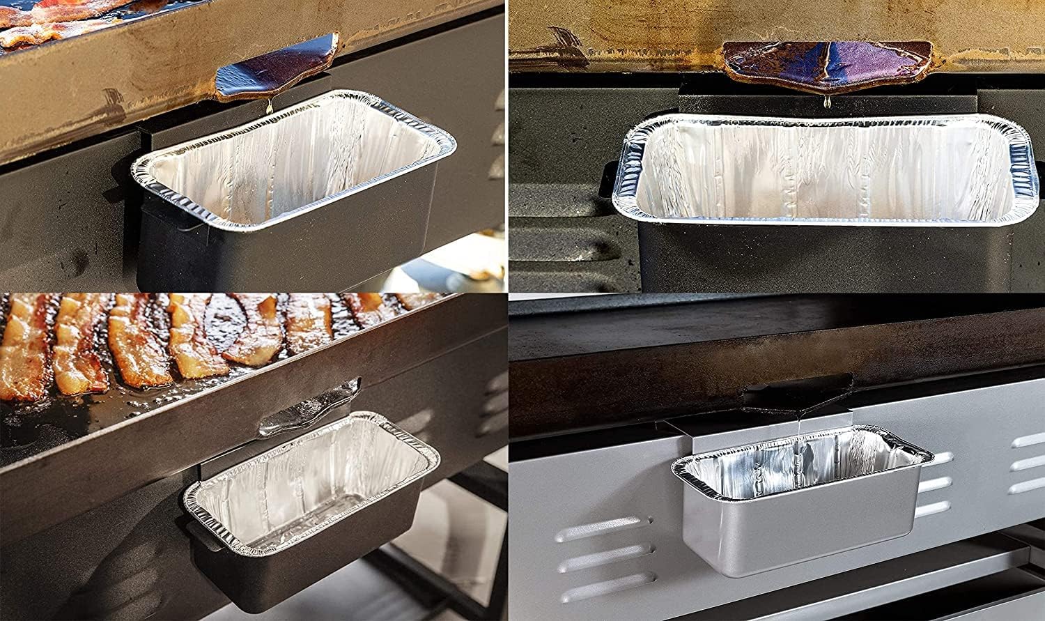 【Makes clean-up a breeze and easy to use】The tin pans help with the cleanup, no longer grease everywhere! Just pull the pan out when the grill is cool and replace it with a new one.