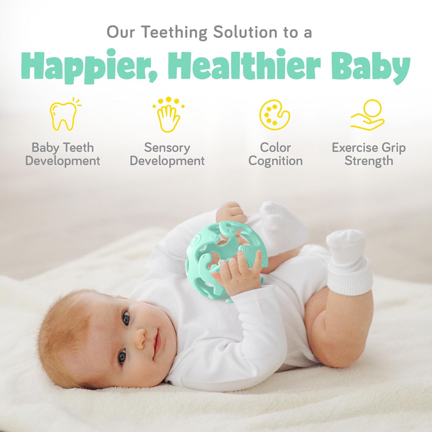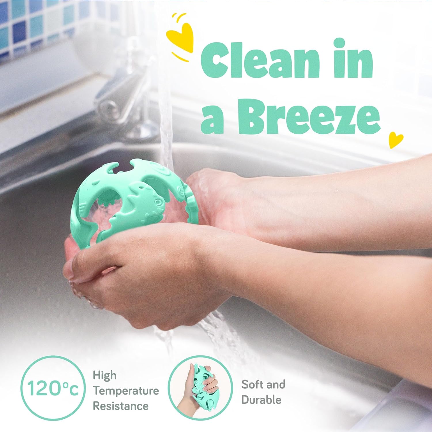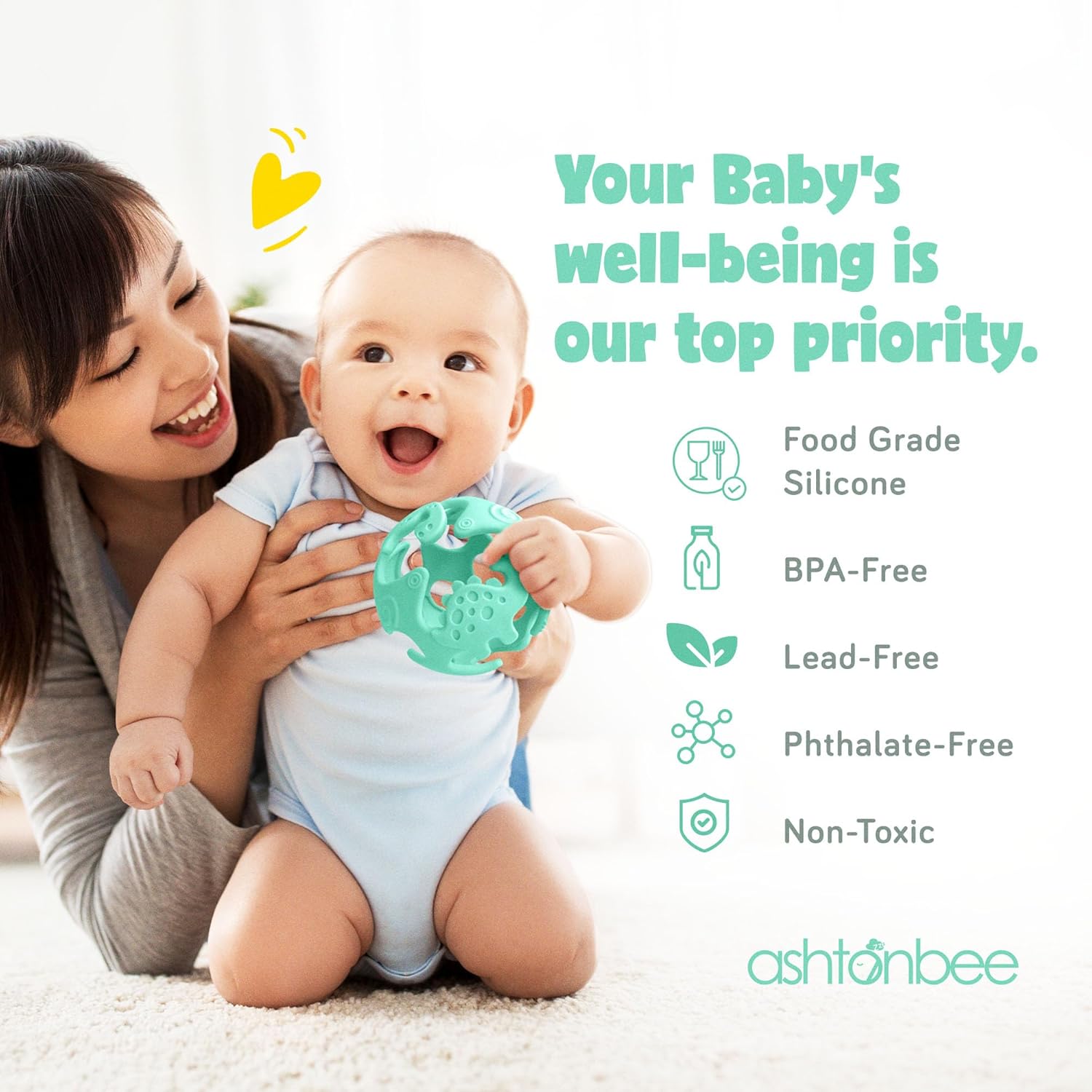 Dinosaur Baby Teething Toys, Food-Grade Silicone Teethers for Babies 0-18 Months, Textured Sensory Balls Teething Toy, Soft and Safe Sensory Chew Toys for Teething Baby Easy to Clean Green – Ashtonbee