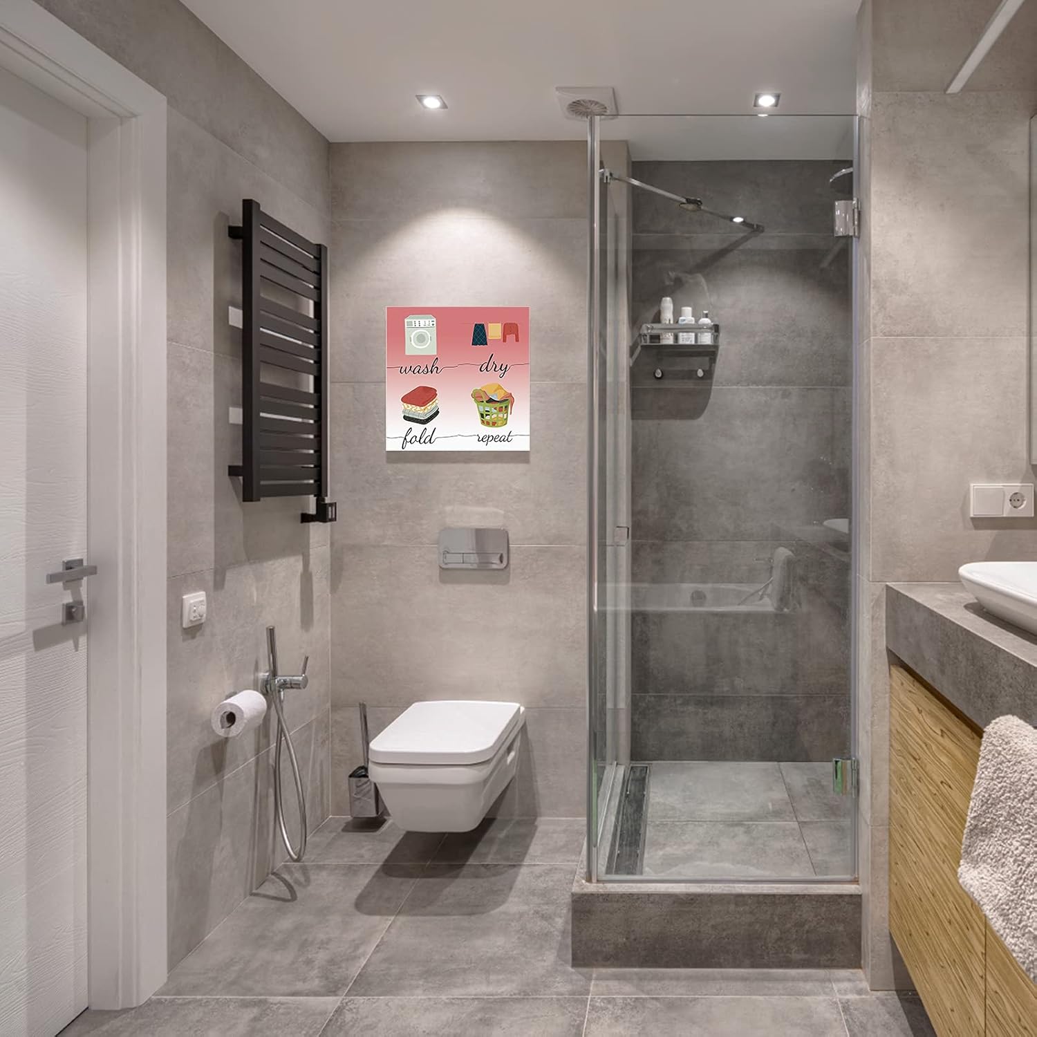 DIY Paint by Numbers for Adults Include Brushes and Acrylic Pigment, Wash Dry Fold Repeat Laundry Room Theme Pink Gradient Canvas Oil Painting with Inner Wooden Frame, 16″x16″ Paint by Number Canvas