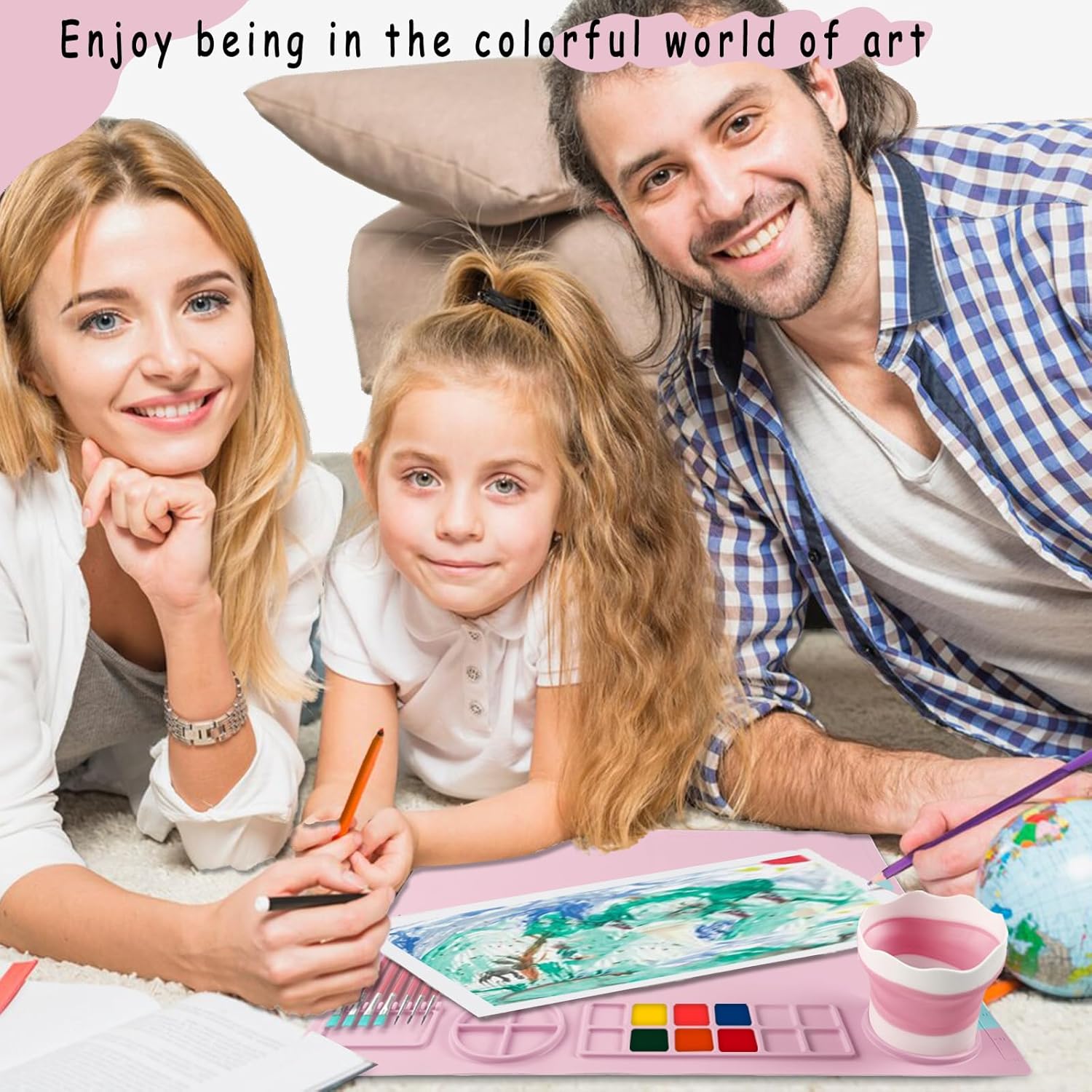 【Unique Mat Design】 Painting mat for kids is designed with 12 painting grids, 4 color palettes, 7 pen holders and detachable bowl, it’s left and bottom have a graduated lines design, easy to use and multifunctional layout, making your creation more efficient and enjoyable.