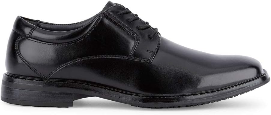 Keep your style sleek, refined, and worry-free with these slip-resistant Dockers dress shoes. The safety outsole creates next level traction, while the memory foam insole provides unmatched support and comfort, making these oxfords ideal for good foot health. These men’s shoes have polished man-made uppers that have been treated with Stain Defender, so you can stay looking sharp for any occasion.