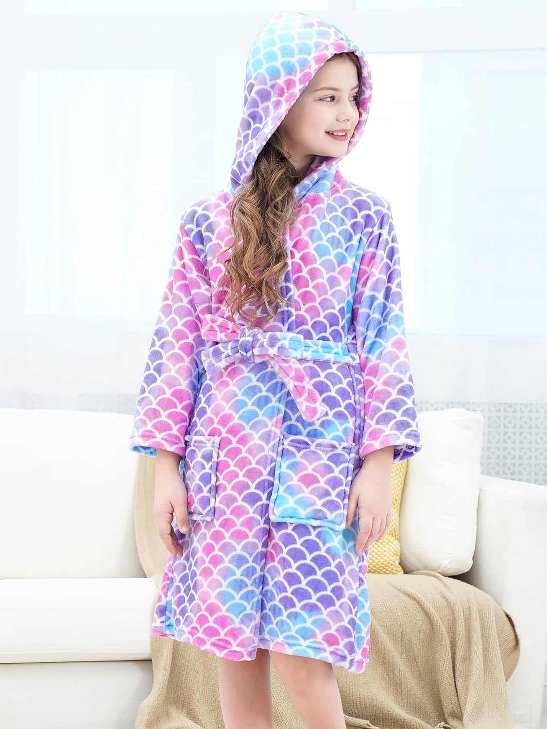 Doctor Unicorn Soft Hooded Rainbow Bathrobe Sleepwear for Girls