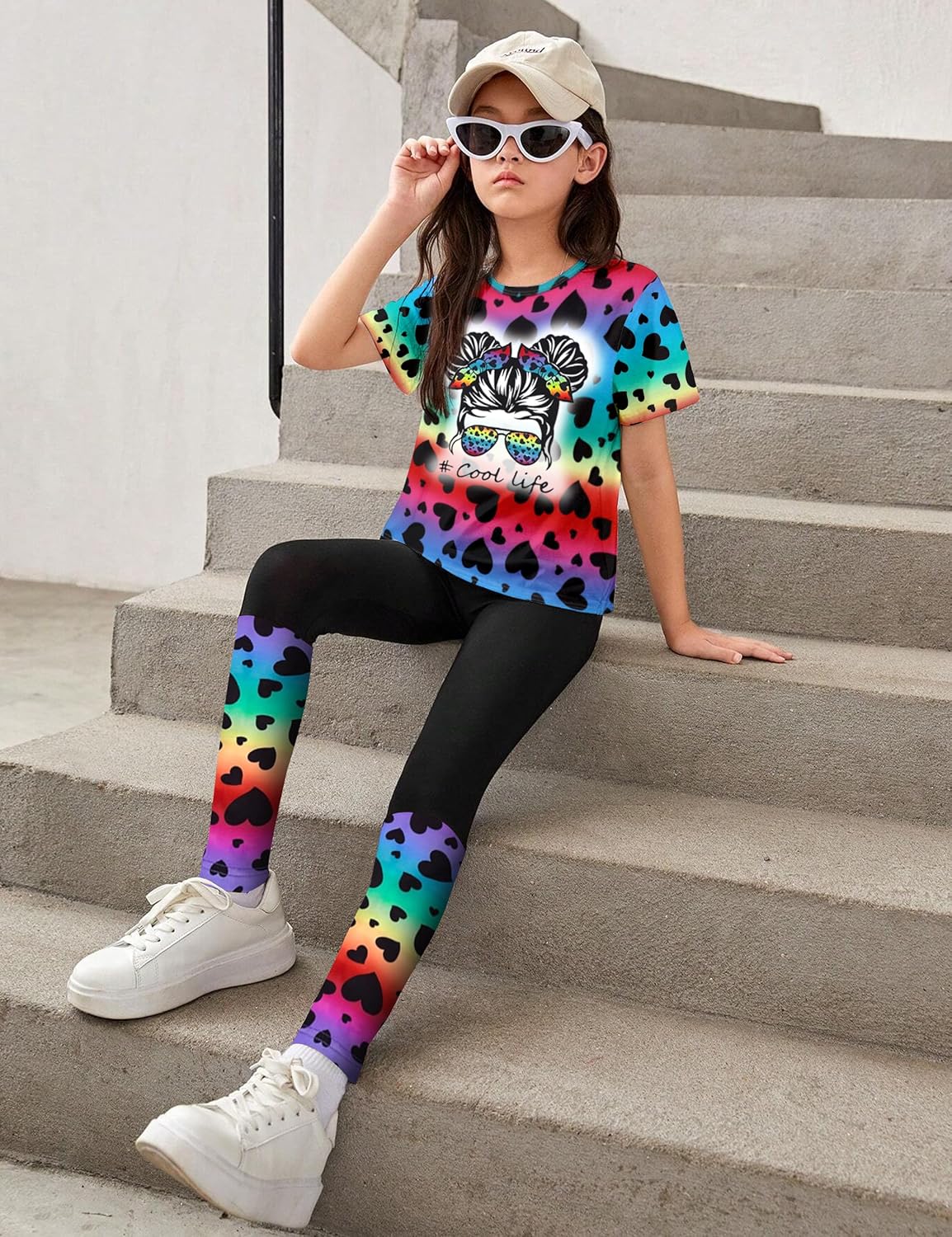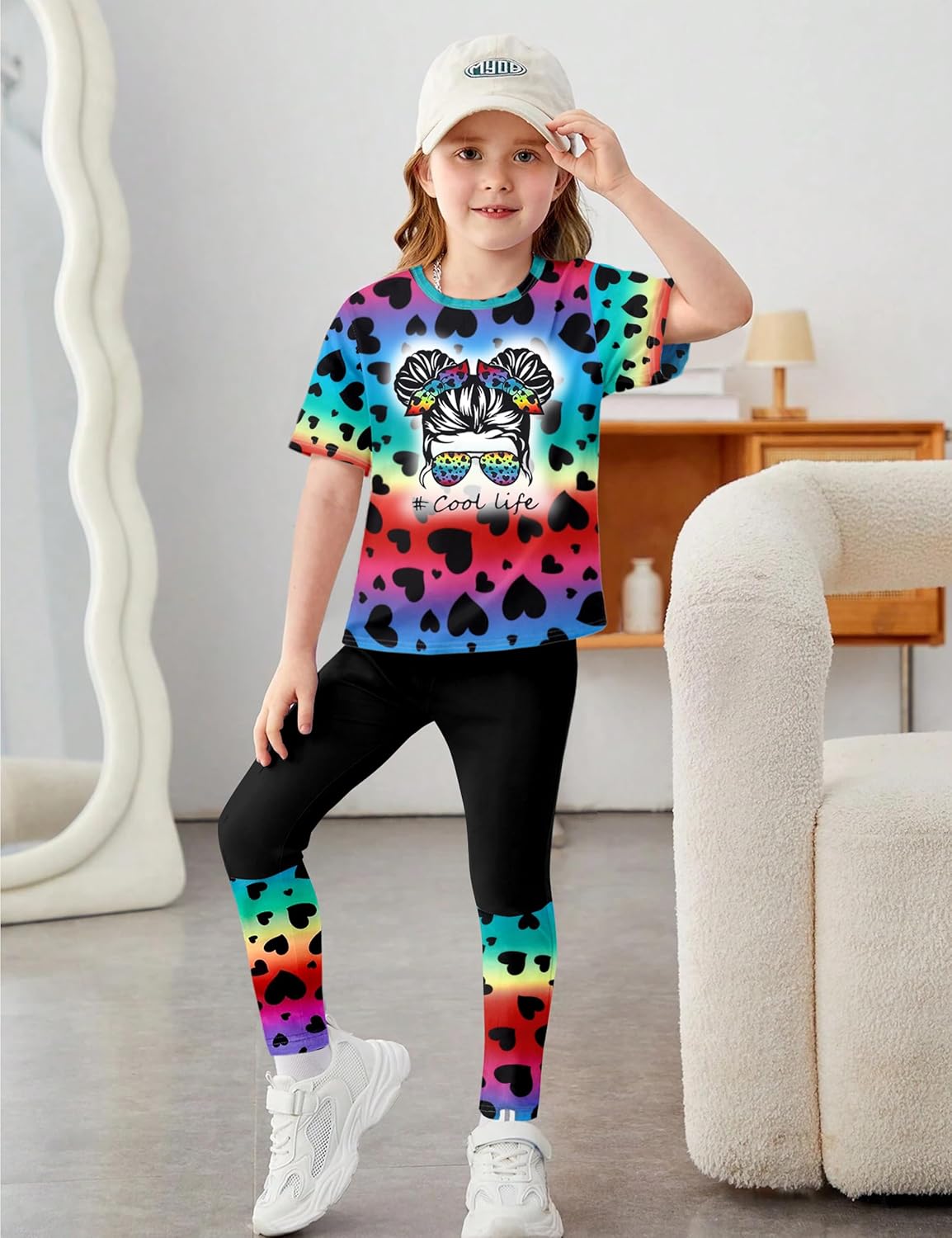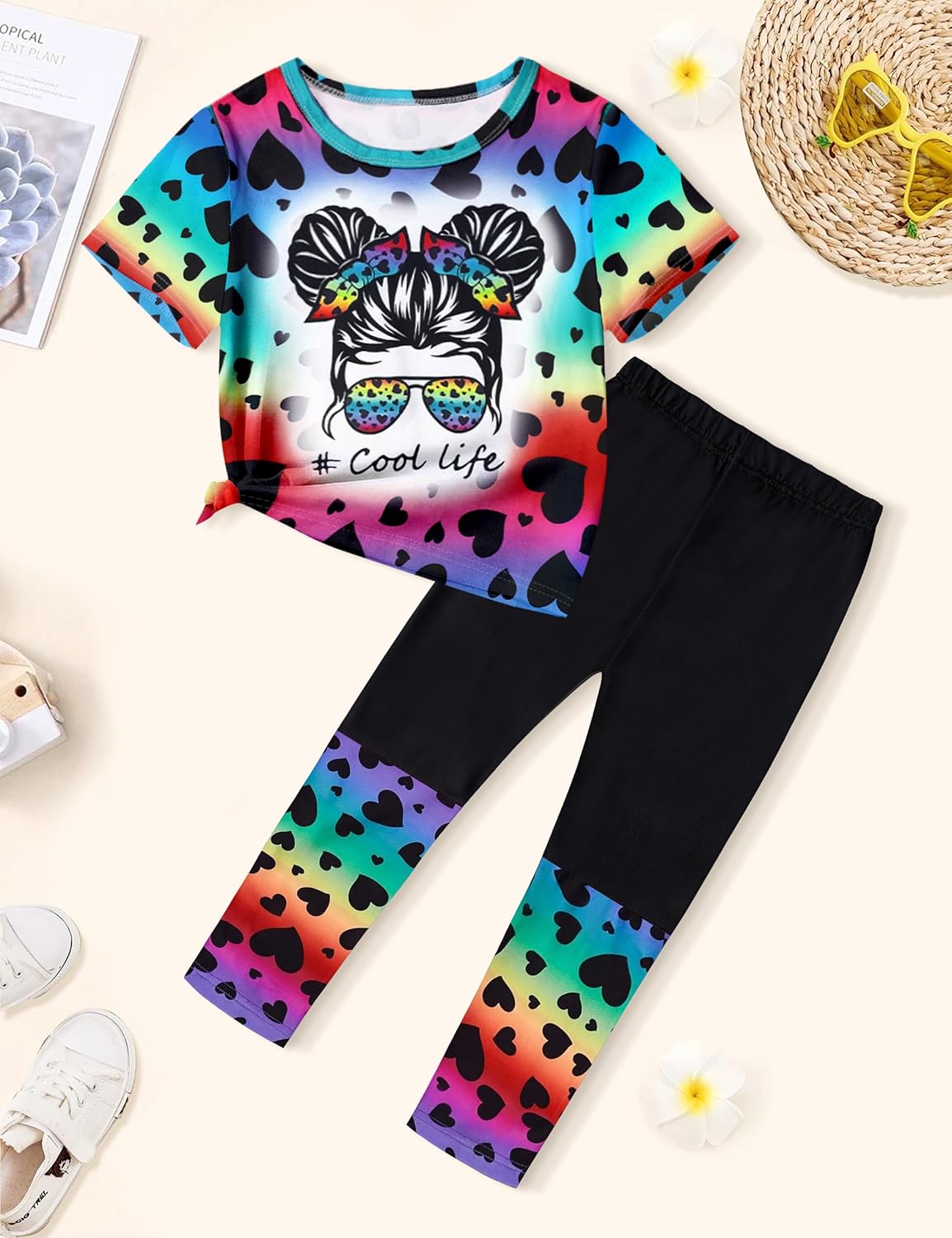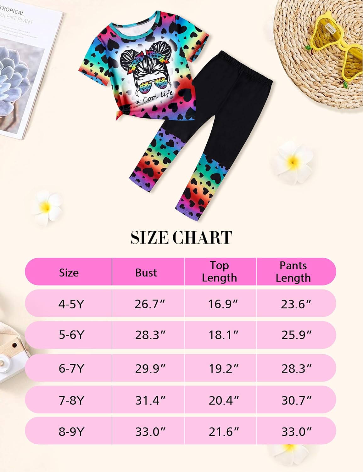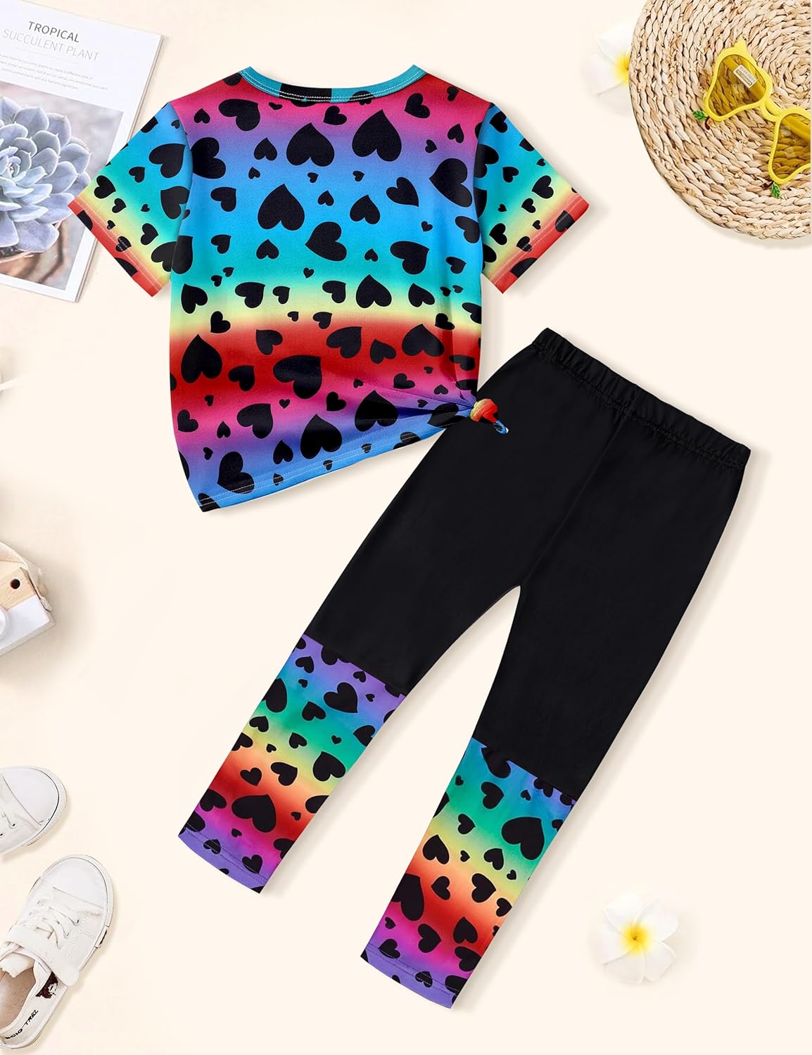 DONWEN Girls Tie-dye 2 Outfit Short Sleeve Tops + Long Pants