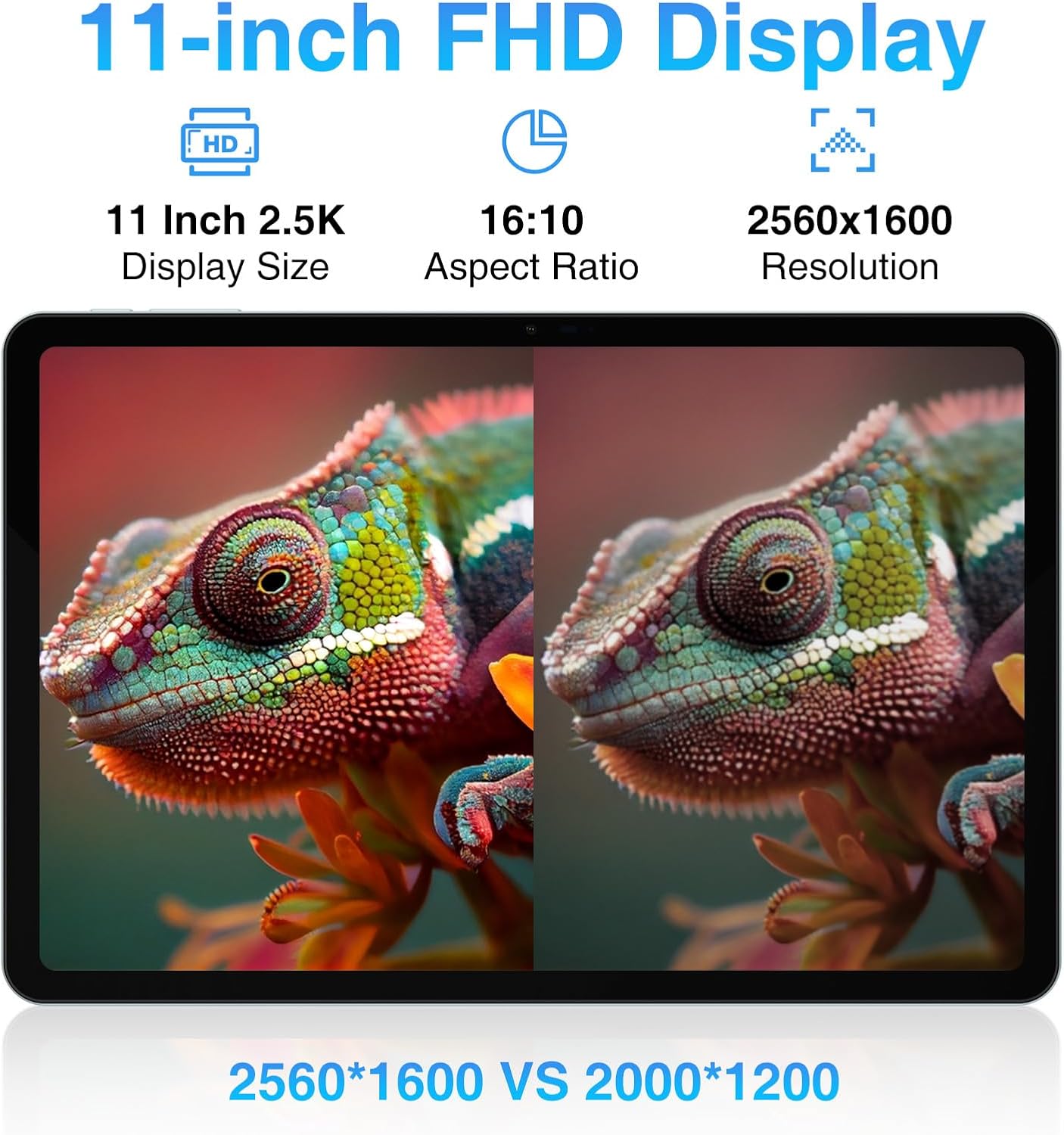 11-inch 2.5K display screen – The 11-inch tablet is equipped with a 2.5K FHD touch screen with an internal battery, which allows for more detailed images and more realistic color reproduction, making movies more exciting to watch. 87.2% Screen Ratio and Wide Color Gamut provide truer visual experience.