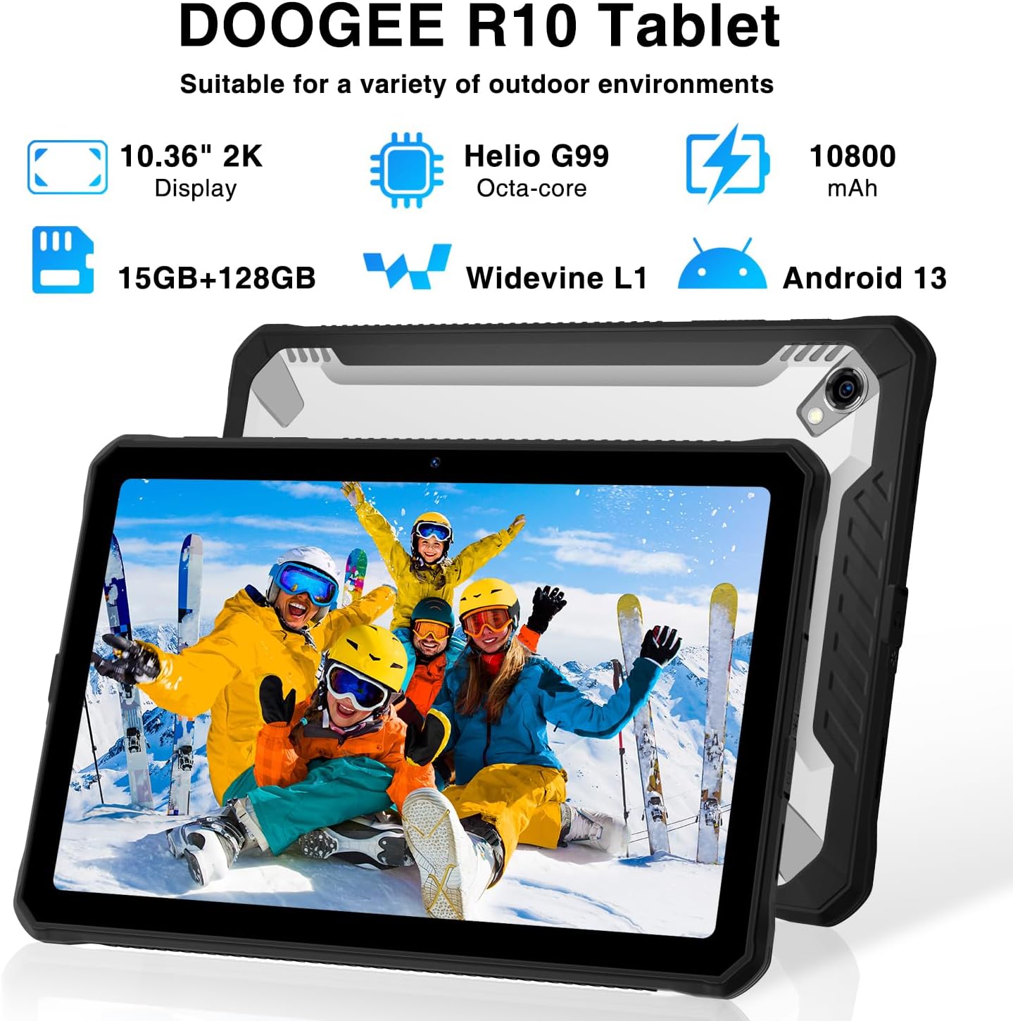 【Android 13 & Helio G99 & 128GB/2TB】The MediaTek Helio G99 is engineered to deliver a powerful and responsive performance for DOOGEE R10 Android 13 rugged tablets. It’s optimized for tasks that demand high processing power, such as gaming, multitasking, and running resource-intensive applications. Plus, Android tablet with 15GB(8+7Virtual) of RAM and 128GB of ROM, expandable up to 2TB by TF card(not included), means you’ll never have to worry about running out of space,whether you’re on the go.