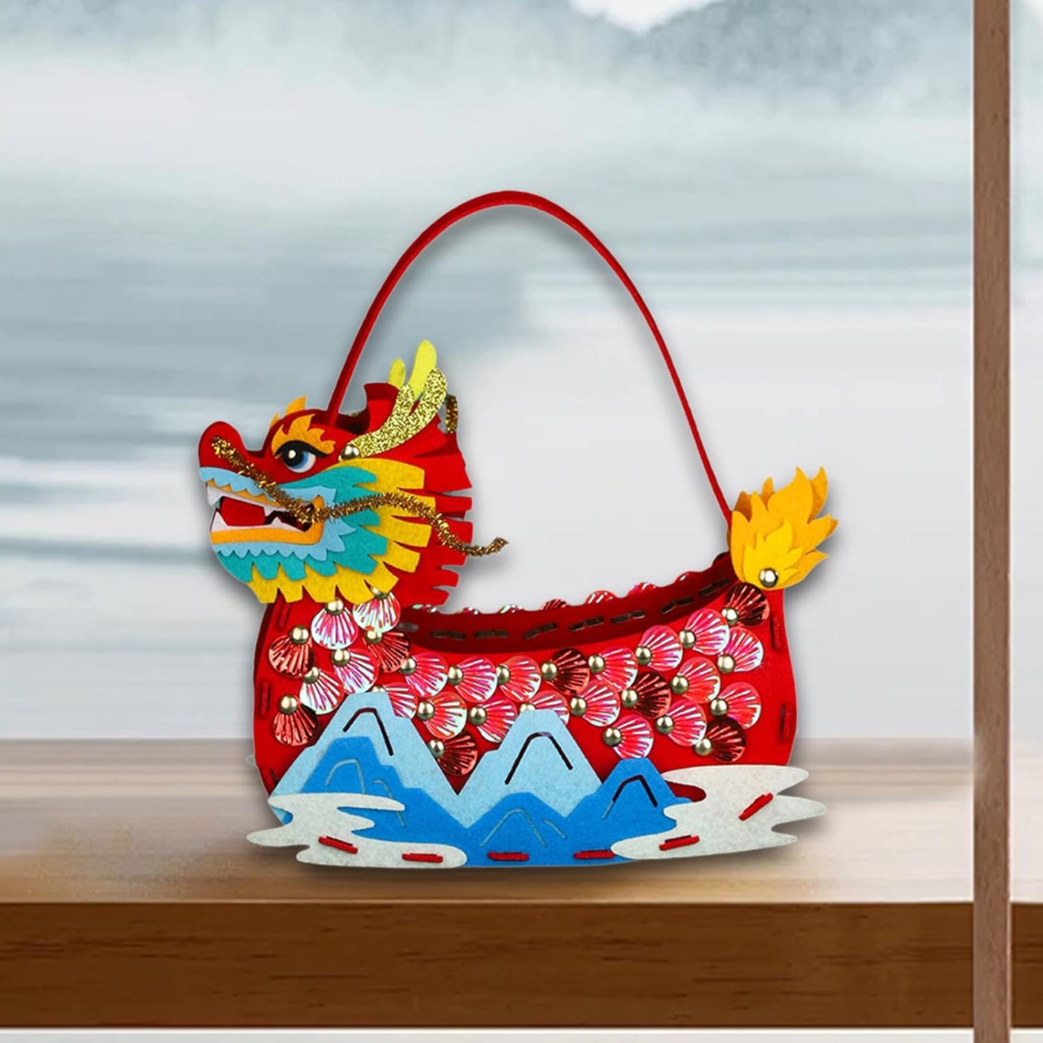 Original price was: $29.99.$16.99Current price is: $16.99.Dragon Boat Festival Decoration Handmade Storage Bag Craft Non Woven Dragon Boat Storage Box Making for Girls and Boys, red