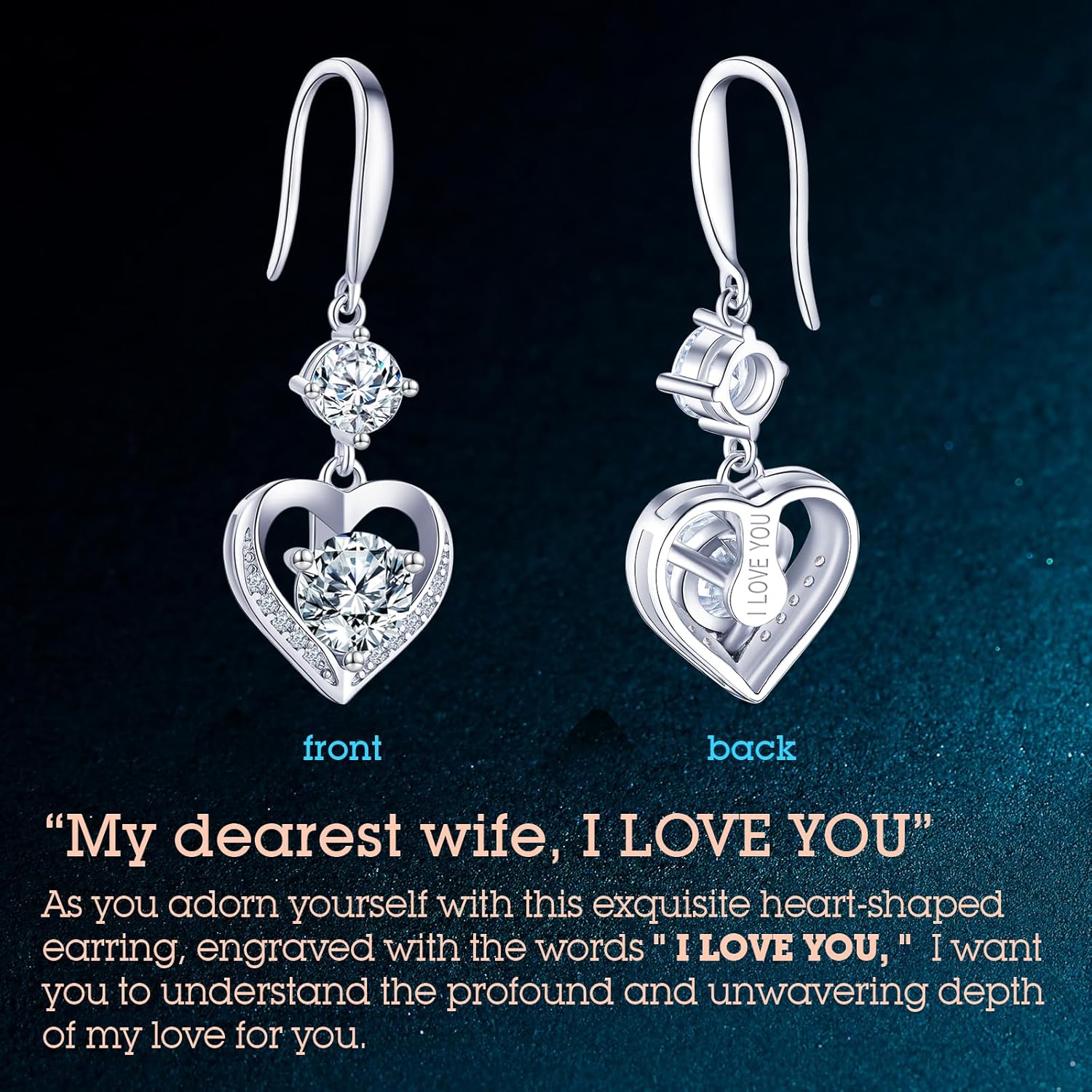 As you wear these exquisite heart-shaped diamond earrings, each engraved with the words “I LOVE YOU,” I want you to understand the depth and completeness of my love for you.
