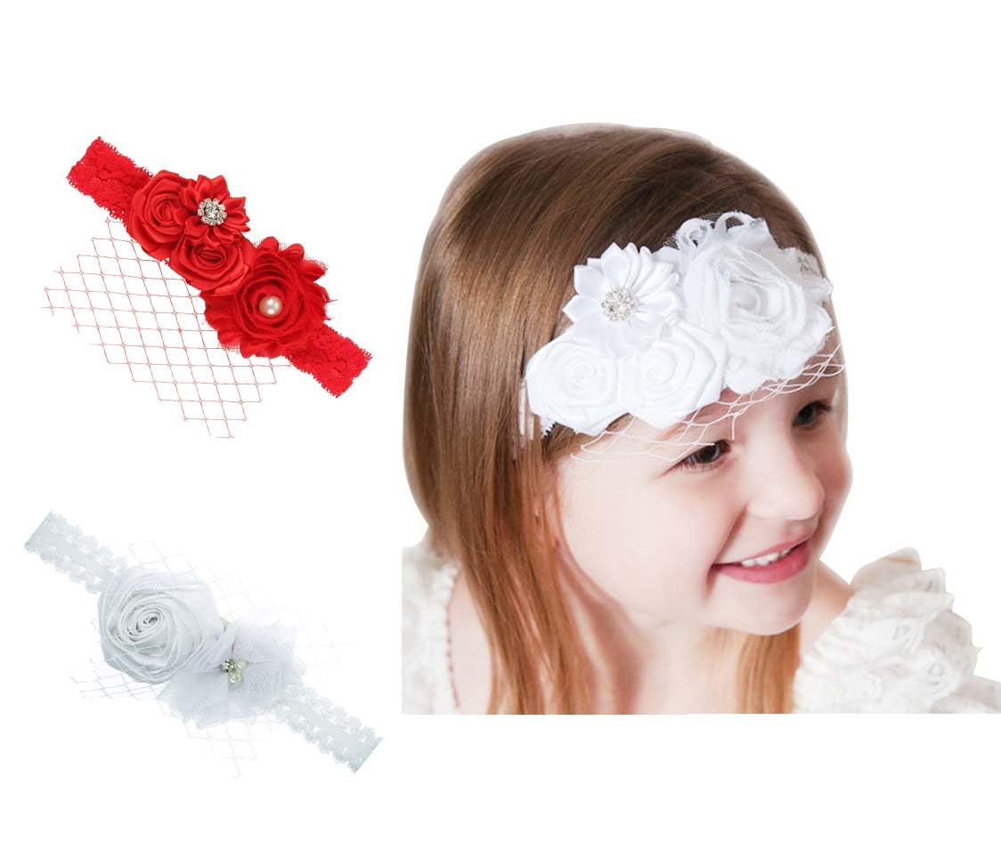 Elegant Baby Flower Crown Lace Bow Headband, Baby Girl Rhinestone Hairband Baby Girl Accessories.(FD112) (Red)