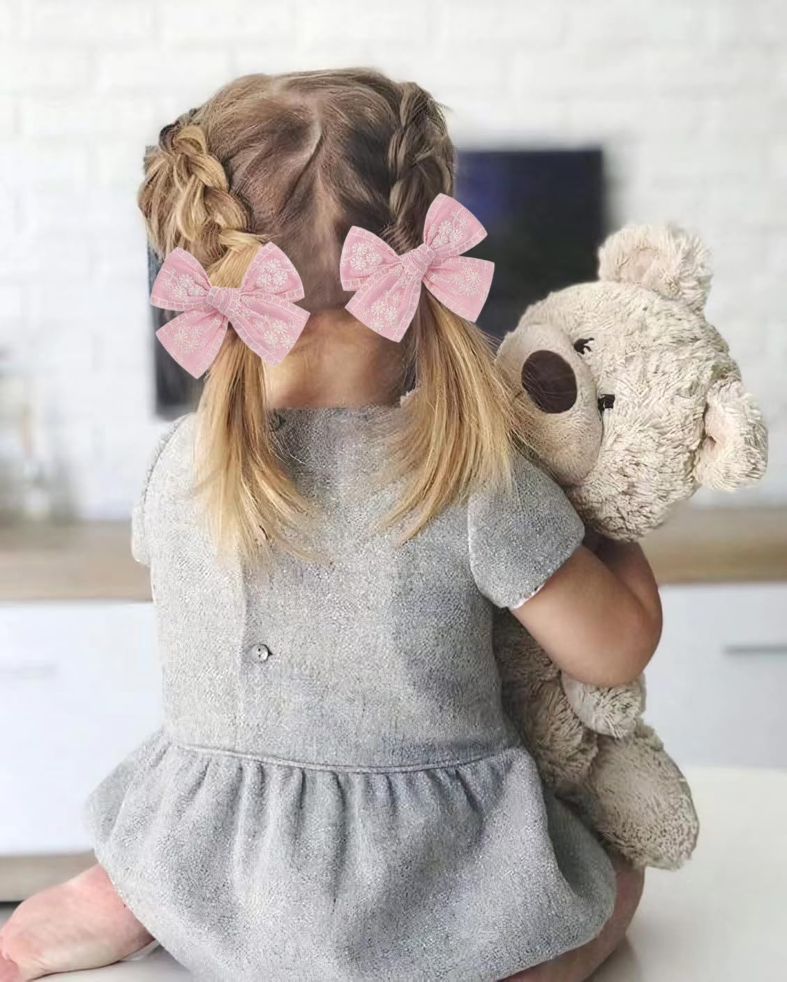 Fairy Hairpins Bows Hair Baby Girl Hair Clips Lace Embroidery Solid Color Fully Lined Hair Accessories Bows for Girls Baby Infant Toddlers in Pairs (A5)