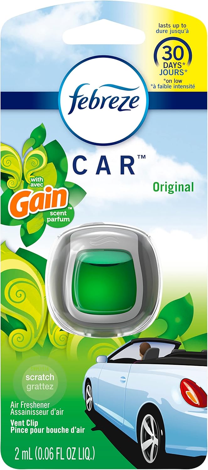 Febreze Car Air Freshener, Car Vent Clip and Odor Fighter, Gain Original Scent, 8 Count