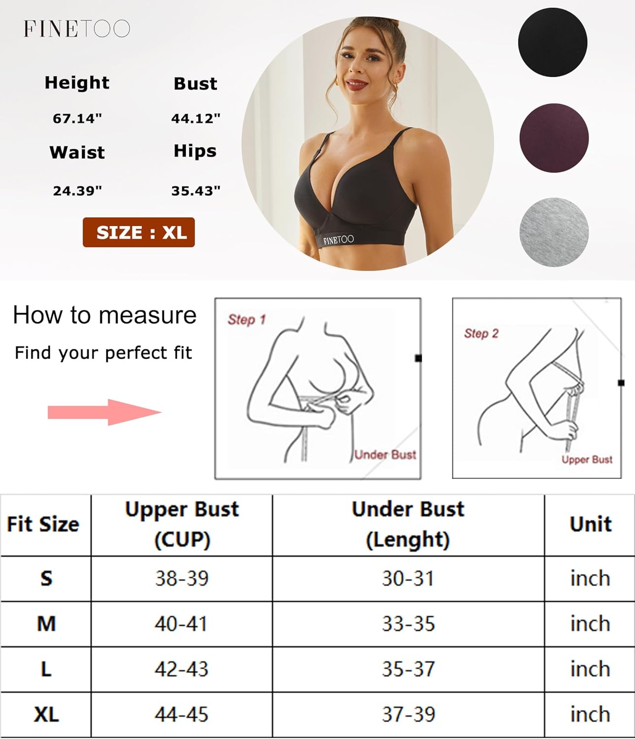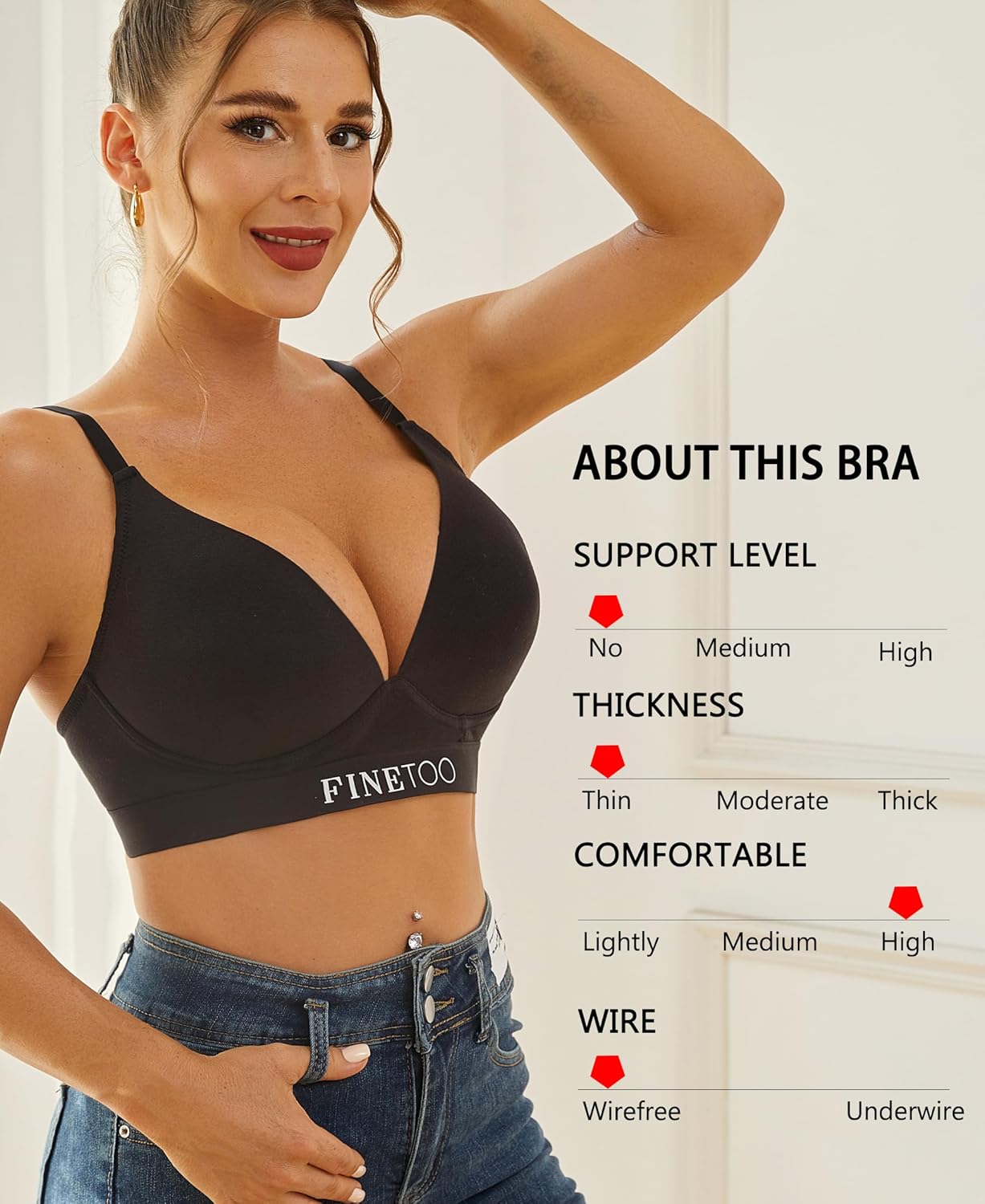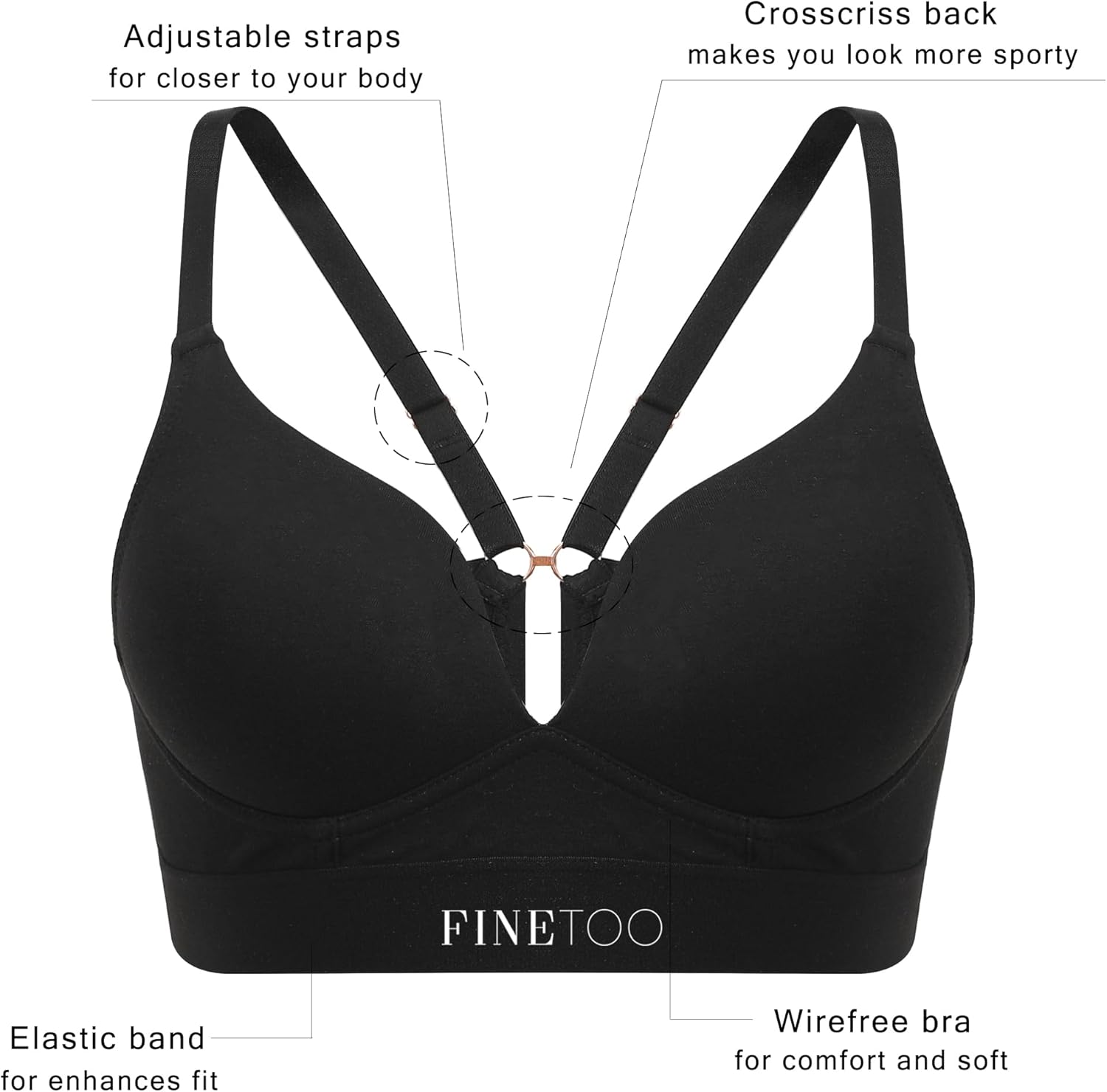 FINETOO Wireless bra combines soft stretchy, wirefree, smooth, full coverage, lightweight, v neck, sporty, designed for daily and working out !