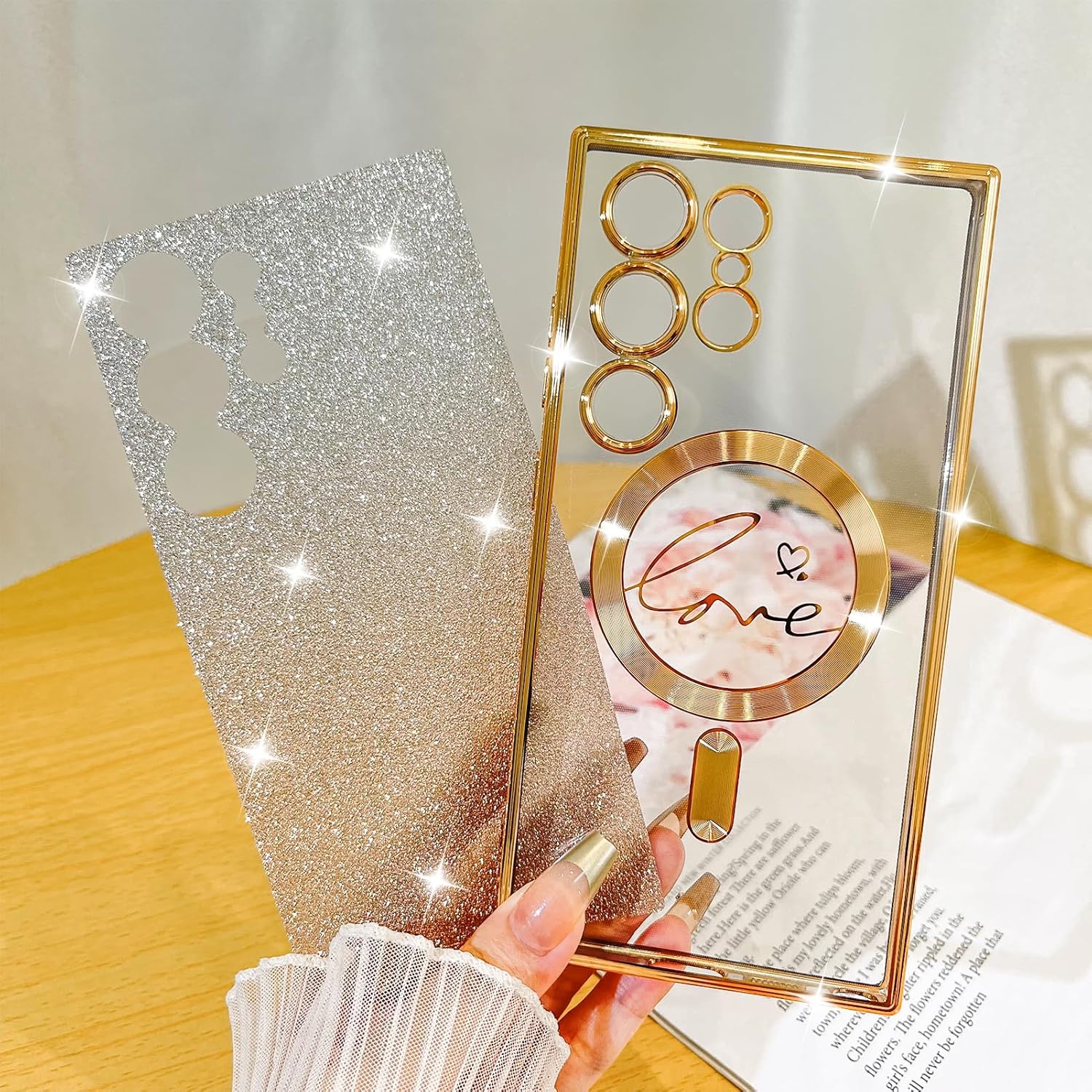 Original price was: $19.99.$12.99Current price is: $12.99.Fiyart Designed for Samsung Galaxy S24 Ultra Case,Compatible with MagSafe Love Heart Plating Camera Protection Clear Phone Case, Magnetic Glitter for Women Girls Shockproof Cover 6.8″-Gold