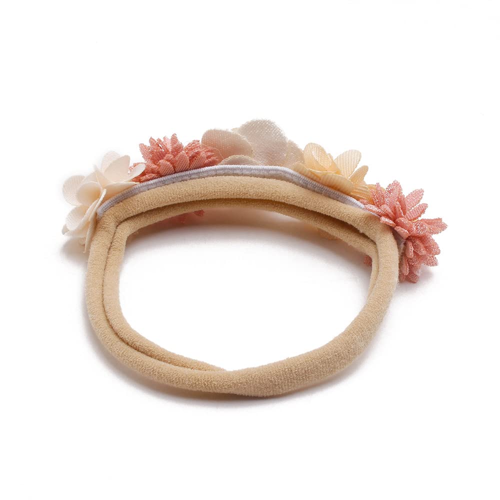 Floral-Headbands Flower-Crown for Baby Girls Elastic Nylon Hairbands for Newborn Infant Toddler Hair Accessories Pack of 3