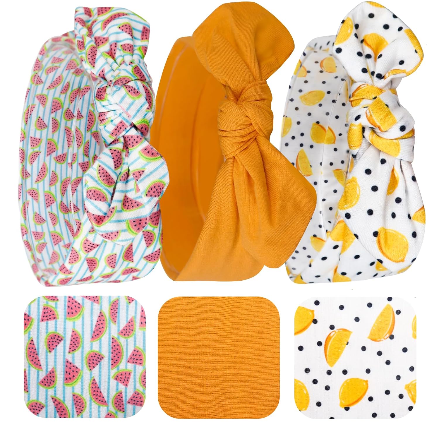 Fmeida 3 Pack Baby Girl Headband Cotton Headwraps Hair Band Knotted Headband Rabbit Ears Turban Fashion Cute Hair Accessories Zesty Fruitopia