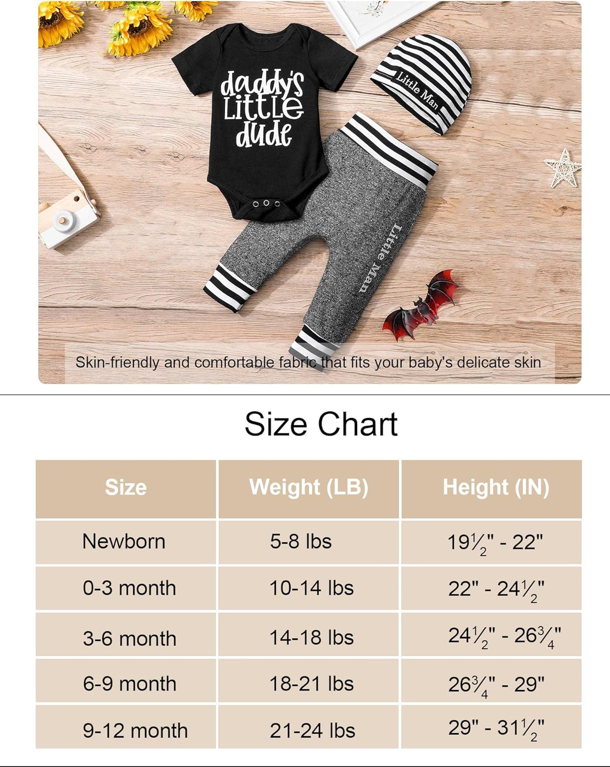 Classical New to the Crew letter print and little man hat design are one of our baby boy stuff features, this will make your little one very cuteThe skin-friendly fabric and fine workmanship of this baby clothes let your baby feel comfy all day long.The baby boy clothes is suitable for spring, summer, fall and winter, with this adroable outfits, your baby will be the cutest one at any occasion