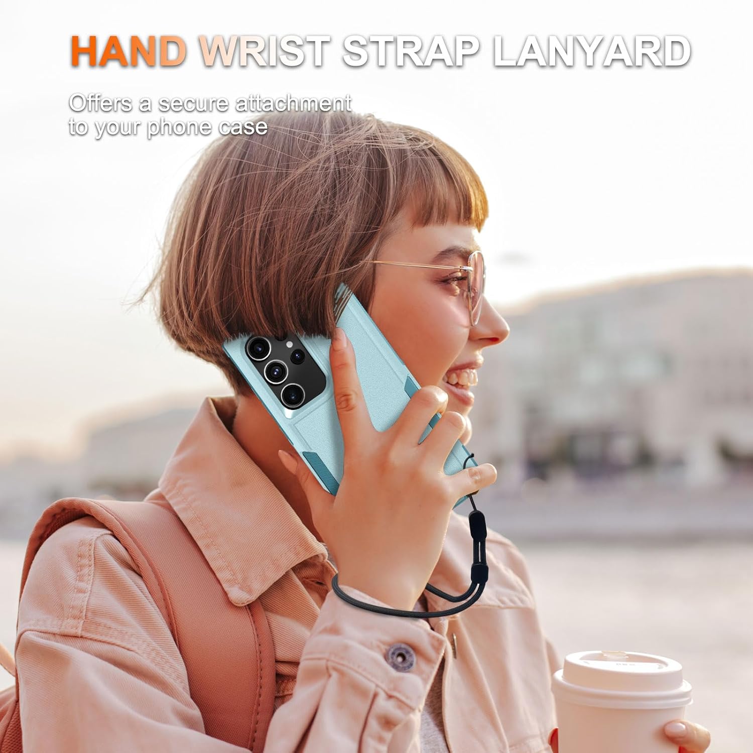 for Samsung Galaxy S24 Ultra Case, Full Body Heavy Duty Rugged Shockproof Protective Phone Cover with Lanyard Strap, Tempered Glass Screen Protector and Camera Lens Cover, Mint Green