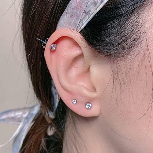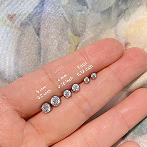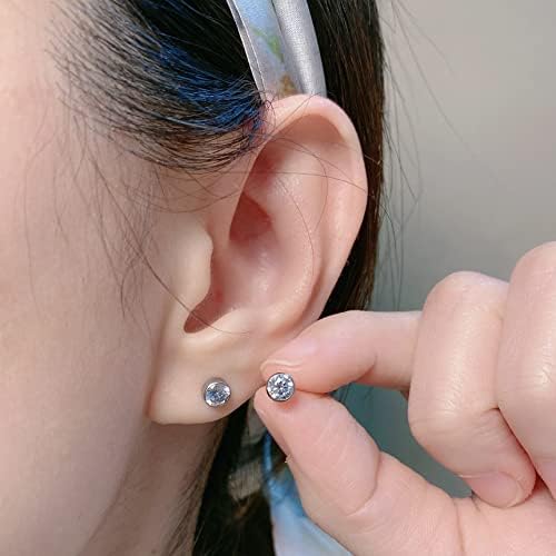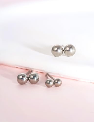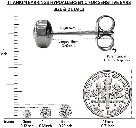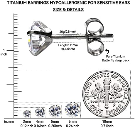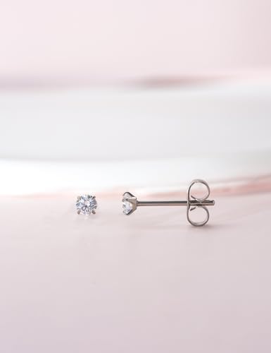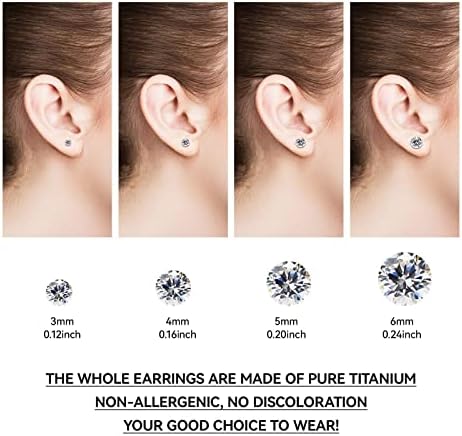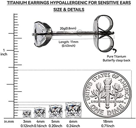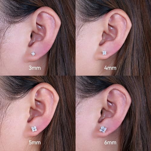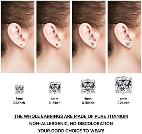 G23 Titanium Earrings Studs, Hypoallergenic Stud Earrings for Women Girls Men Sensitive Ears,Cubic Zirconia Earrings Round Bright/Princess-Cut Square/Ball , Premium High Polished with Pure Titanium Backs