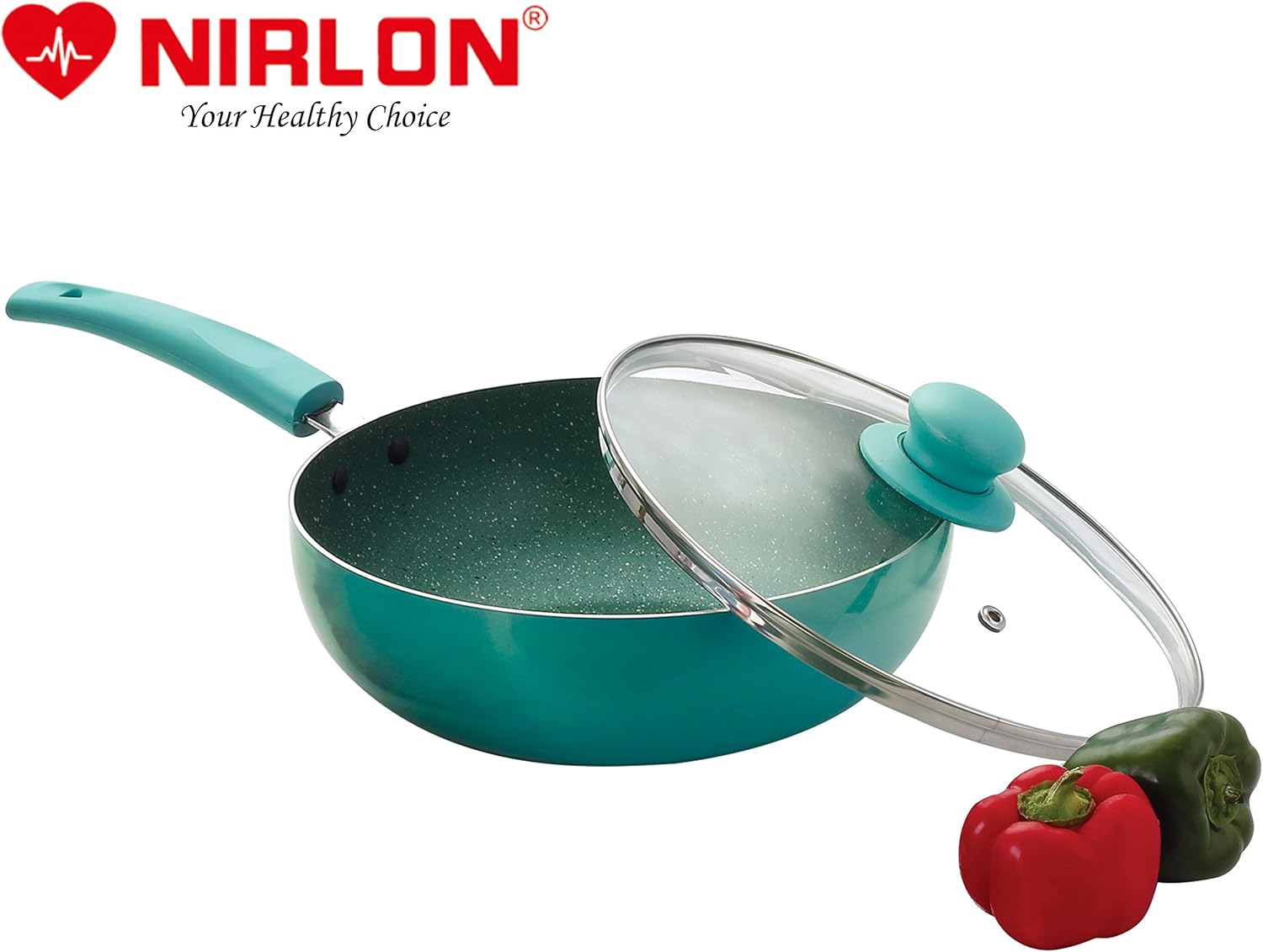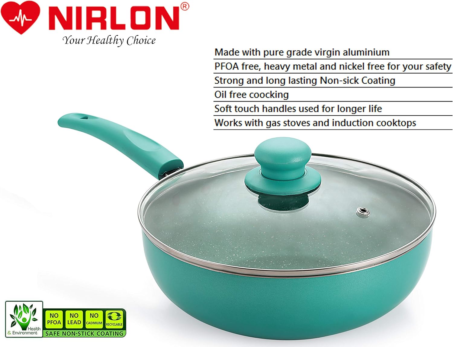 Nirlon Galaxy Induction Base Non Stick Aluminium Deep Kadhai with Glass Lid [240mm, 3 LTR]