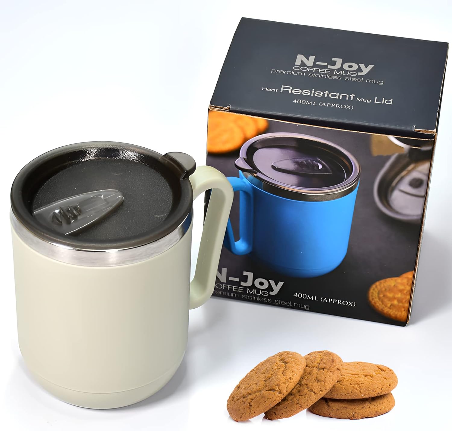 Stainless Steel Mug with a generous 400 ml capacity for everyday use! N-Joy Mug with a Lid will help you carry your beverages anytime anywhere! Can be use as Travel Coffee Mug, Coffee Sipper, Team Mug, Vacuum Flask, Coffee Tumbler.