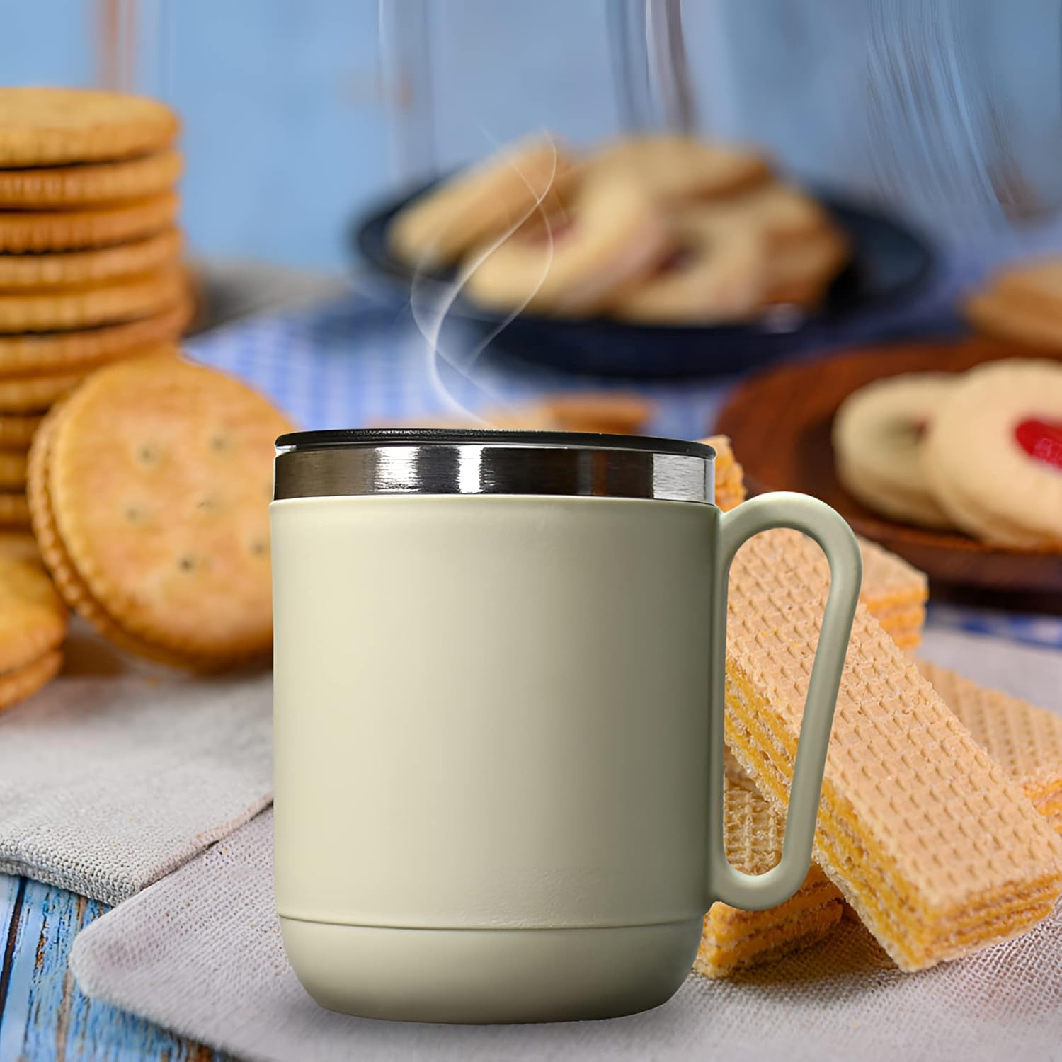 The stylish body of this Mug for Tea/Coffee is BPA Free! The bright color comes from the royal look. It is also Sweat-proof for a hassle-free carrying experience regardless of the temperature of your beverage.
