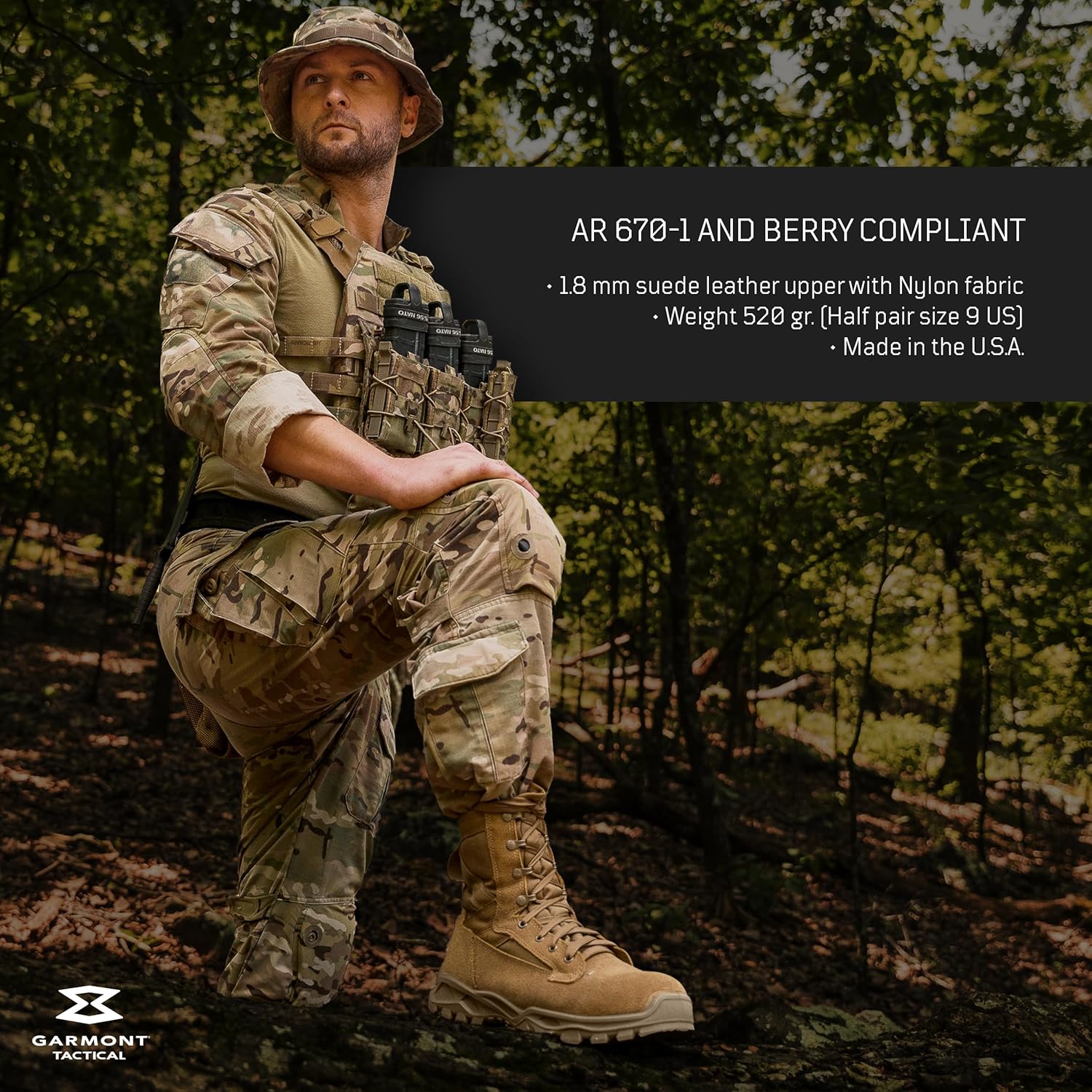 Efficient, modern and durable, these boots combine sturdy materials, such as leather, with more flexible ones, like nylon, offering unparalleled support and lightness. Offers a responsive feel, for activities requiring control, agility, and support. Traditional tactical boots proudly made in USA. Designed for intense operations and long duty days on dry ground and in warm weather.The T8 Anthem boots are Berry compliant, as well as AR670-1 compliant. The first Garmont tactical boots specifically developed for women. Last, fit and design are crafted for womens needs. Increased arch support and slightly raised heel to support shorter Achilles tendon, extra comfort & shock absorption. A wet weather tactical boot designed to provide waterproof support, warmth and comfort. Designed to help you maintain grip even on wet or icy surfaces. A multi-terrain tactical boot for unsurpassed comfort and protection even under a heavy load and in demanding field conditions. Suitable for varied terrain from mudsoaked trails to arid desert sands, steep slopes and sheer rock face. For missions where the need for speed is paramount, this lightweight high performance tactical boot provides unsurpassed comfort and protection even under a heavy load and on assignments requiring long periods of standing and excessive walking.