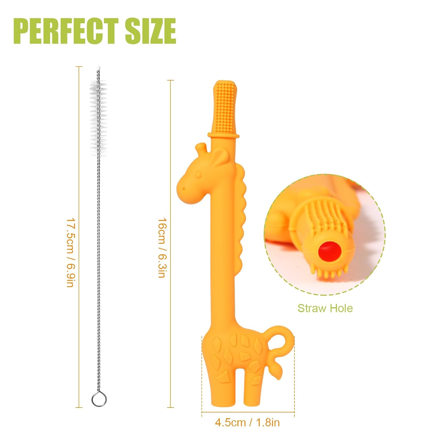 Giraffe Hollow Teether Tube, Teething Toys for Babies 0-6 Months, Silicone Teethers for Babies 6-12 Months, Sensory Toys for Babies, Baby Chew Toys