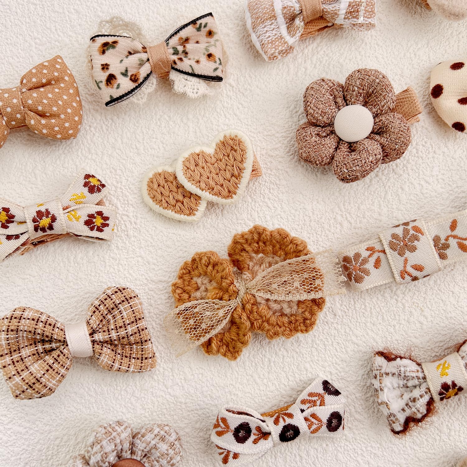 Girl Hair Clips Brown Flower Fabric Snap Hair Clips Fully Lined Alligator Clips Brown Bow Hair Accessories for Little Girl Teens Toddler Kids,20pcs