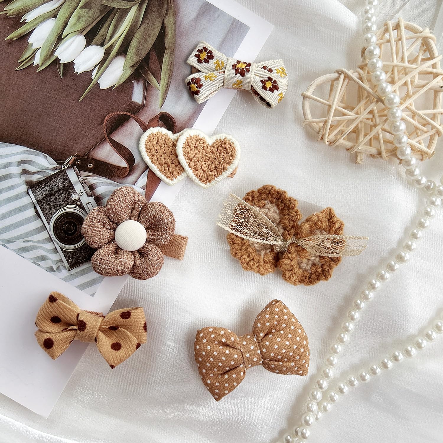 Girl Hair Clips Brown Flower Fabric Snap Hair Clips Fully Lined Alligator Clips Brown Bow Hair Accessories for Little Girl Teens Toddler Kids,20pcs