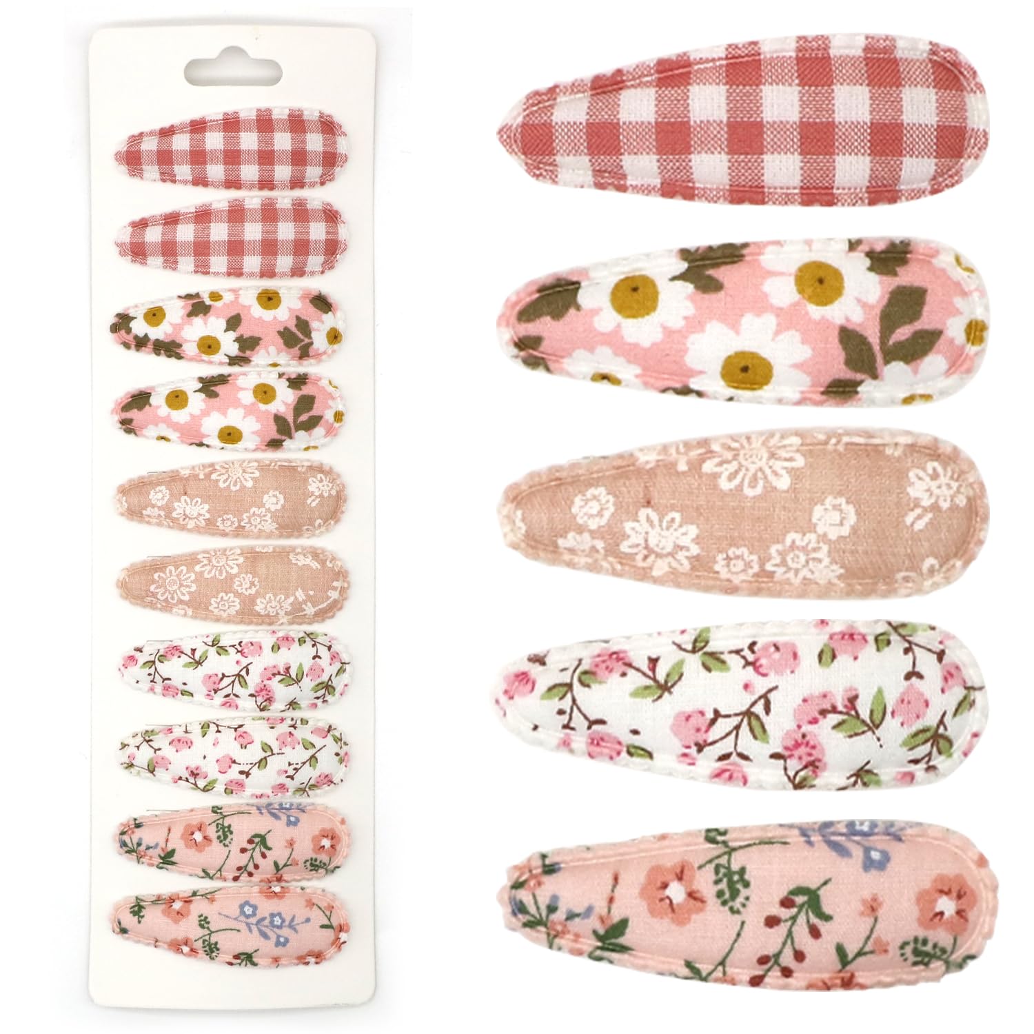 Dohia Girl Hair Clips Floral Print Toddler Hair Clips Cotton Snap Hairpins Non Slip Barrettes Hair Barrettes Hair Accessories for Baby Toddler Girls Kids