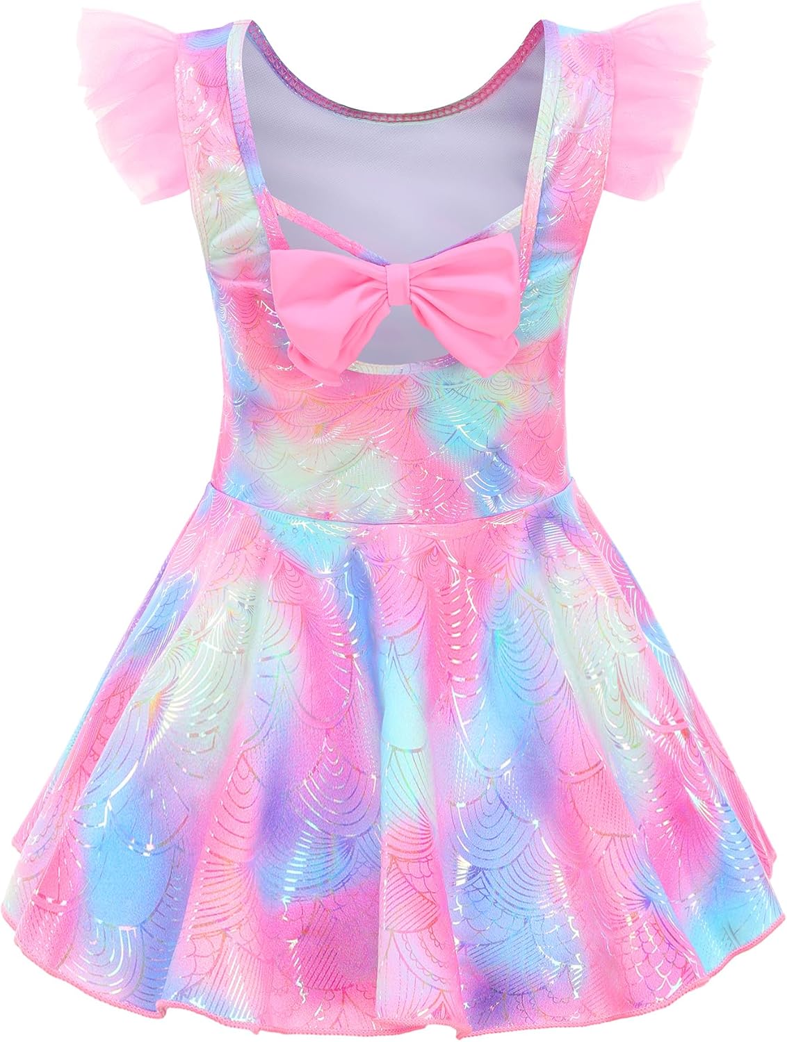 Girl One Piece Swimsuit with Short Modest Beach Swim Dress Printed Skirted Bathing Suit
