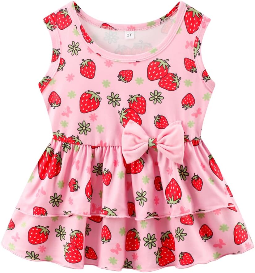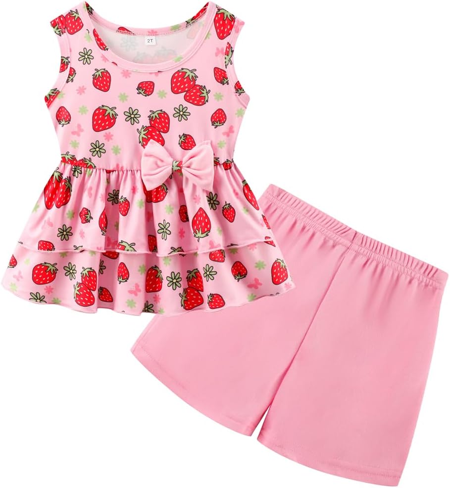 Toddler Girls 2 Piece Outfit Summer Short Set Sleeveless Bow Knot Tank Top and Shorts Cute Clothes 2-7T