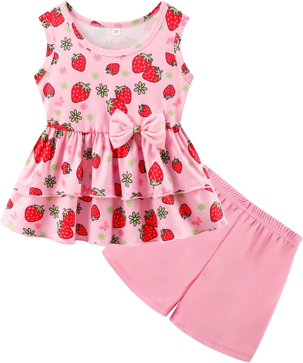 Toddler Girls 2 Piece Outfit Summer Short Set Sleeveless Bow Knot Tank Top and Shorts Cute Clothes 2-7T