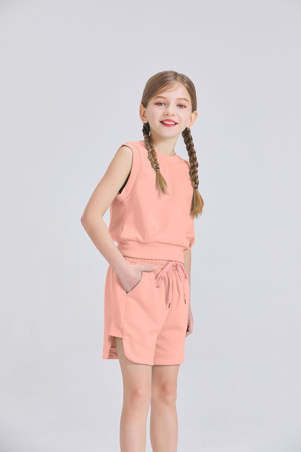 Girls 2 Piece Outfits 2024 Trendy Clothes Summer Cute Sleeveless Tops Shorts Clothing Sets Activewear