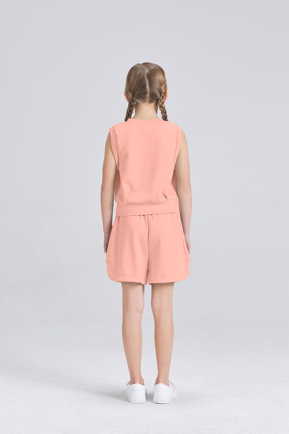 Girls 2 Piece Outfits 2024 Trendy Clothes Summer Cute Sleeveless Tops Shorts Clothing Sets Activewear