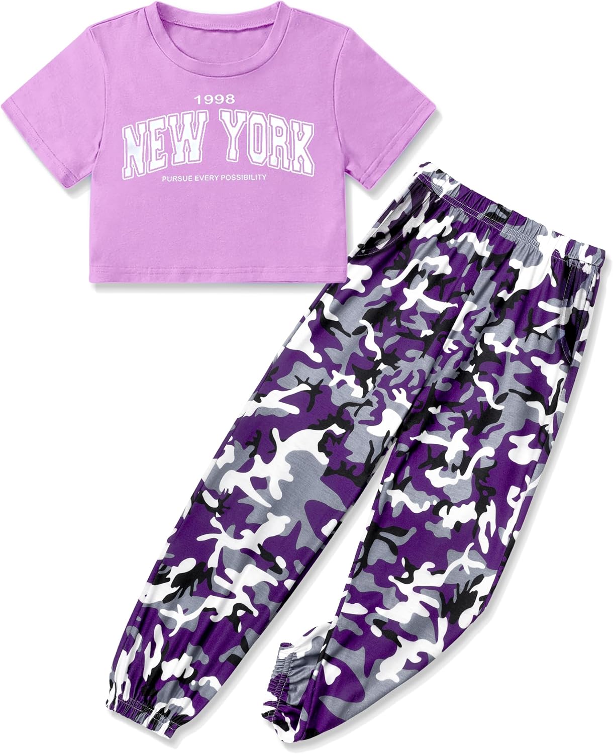 CRISONE Girls 2 Piece Outfits Crop Top + Camouflage Pants Trendy Clothes Sets girls outfitsgirls outfits